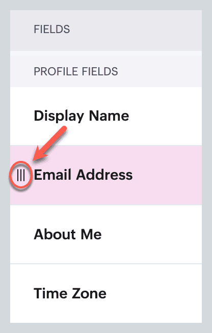 From the list of fields, click the drag icon on the left side of the field and re-order them to suit your preferences.