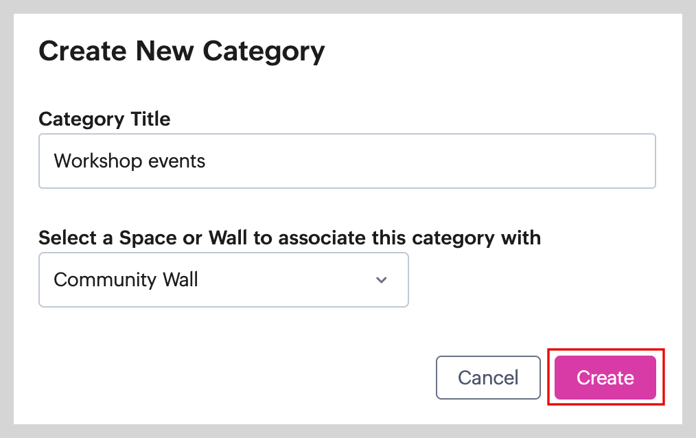 Once a category is created, the associated Space/Wall cannot be changed. To associate the category with a different Space/Wall, you need to delete it and create a new one.