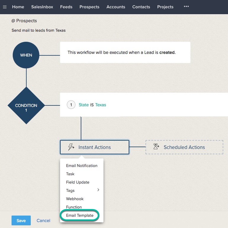 To use the custom action in your application, publish the extension and install it in your CRM application. Create a workflow rule to send email to leads from the 'State' Texas and invoke the script created through custom action.
