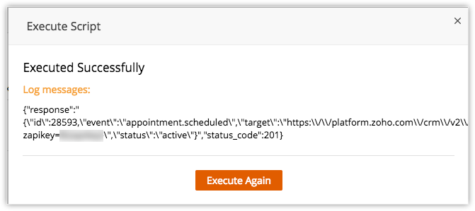 - response = zoho.crm.invokeConnector("acuityschedulingext.acuityscheduler.regsiterwebhook", scheduledMap);