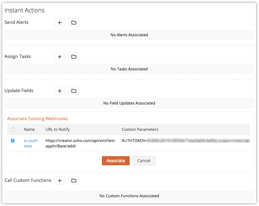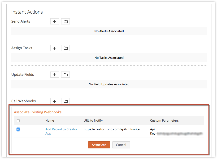 - You can associate up to 6 (1 Instant Action and 5 Time-Based Actions) webhooks per workflow rule.