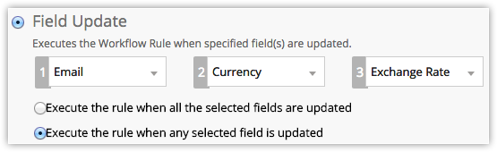 - For a rule to be triggered using the Field Update option, both the rule criteria and the execution criteria must be true.