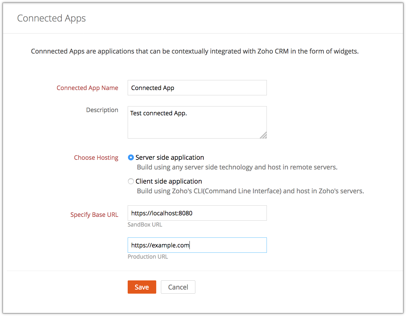 - Creating a connected application in Zoho Developer Console