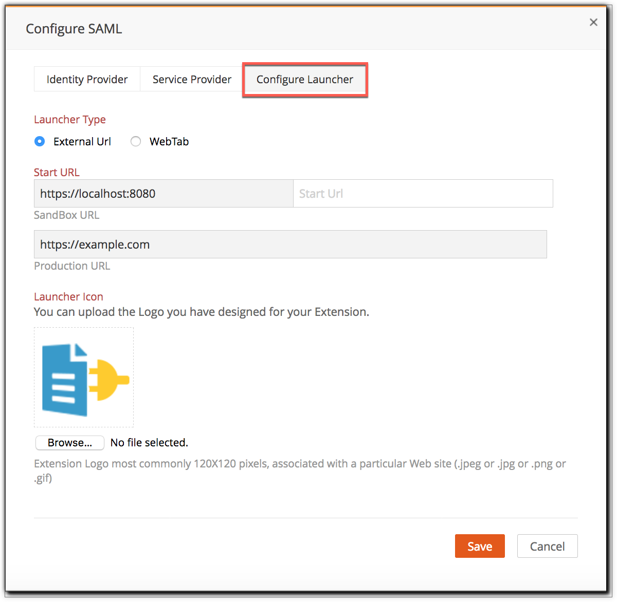 Now you can configure a launcher for your Connected App. It can either be a web tab or a link in the launcher.