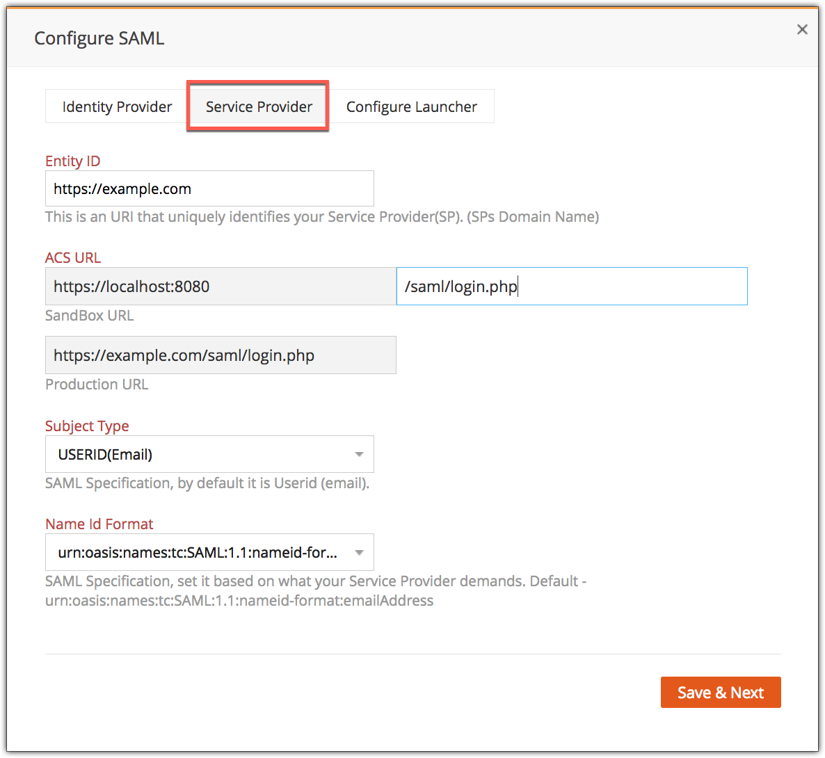 - Configuring SAML settings in your php application