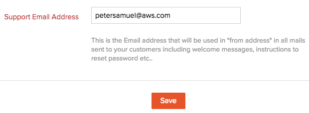 You can have one common email address that can be used to send welcome emails, support emails, etc. to your customers. Specify this email address and it will be used in the "from address" of all the automated emails sent from the application.