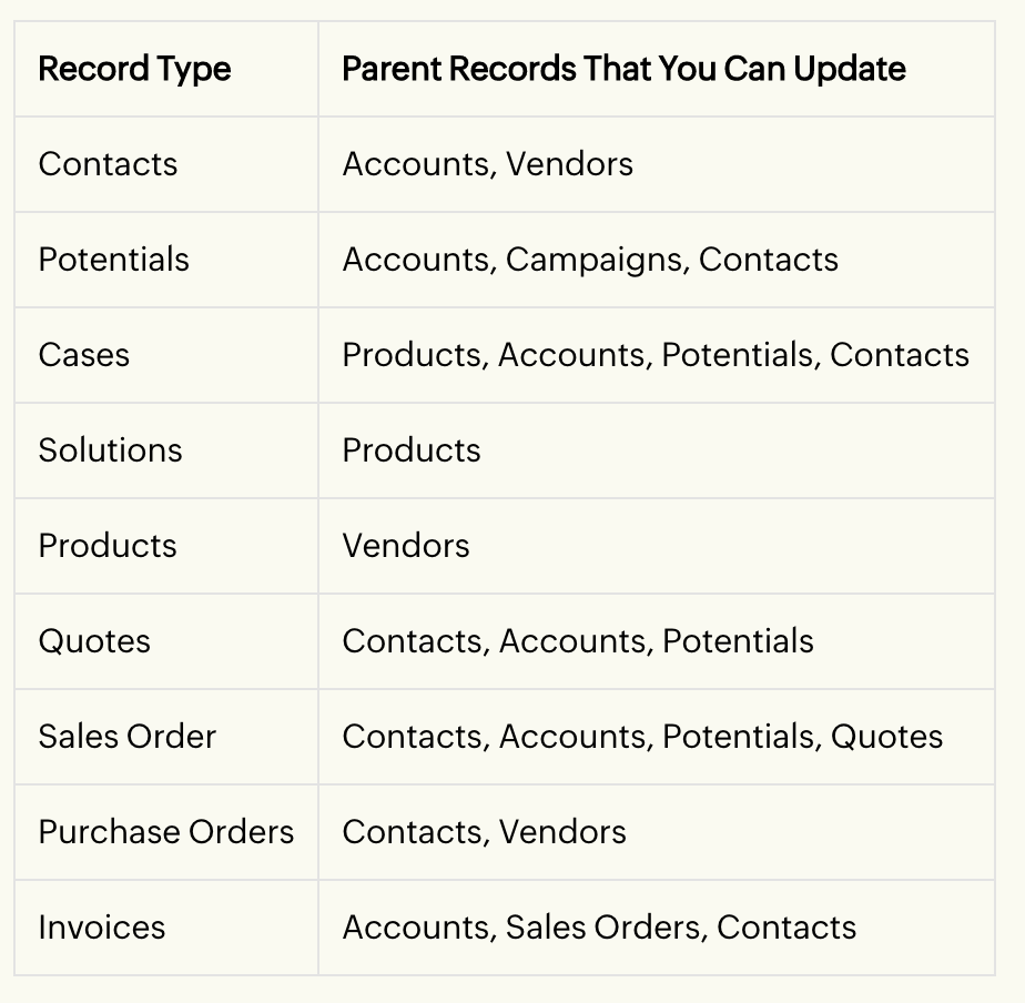 You can also update the field values of the related parent records associated to the record selected for workflow rule. For example: While creating workflow rules for Contacts, you will be able to update the fields of the parent Account records too.