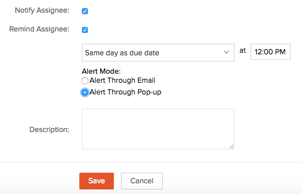 2. Alert through Pop-up - A pop-up reminder will be initiated to the task owner at the specified time.