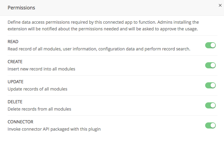 - The modules Leads, Contacts, Potentials, Documents, Reports, Activities, Forecasts and Social alone should be selected. Uncheck the rest of the modules.