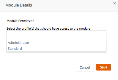Select the profile "Administrator". Users in the selected profile(s) will have access to the custom module.