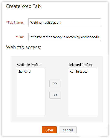 1. The web tabs that you create will not be linked to the other modules in your CRM.