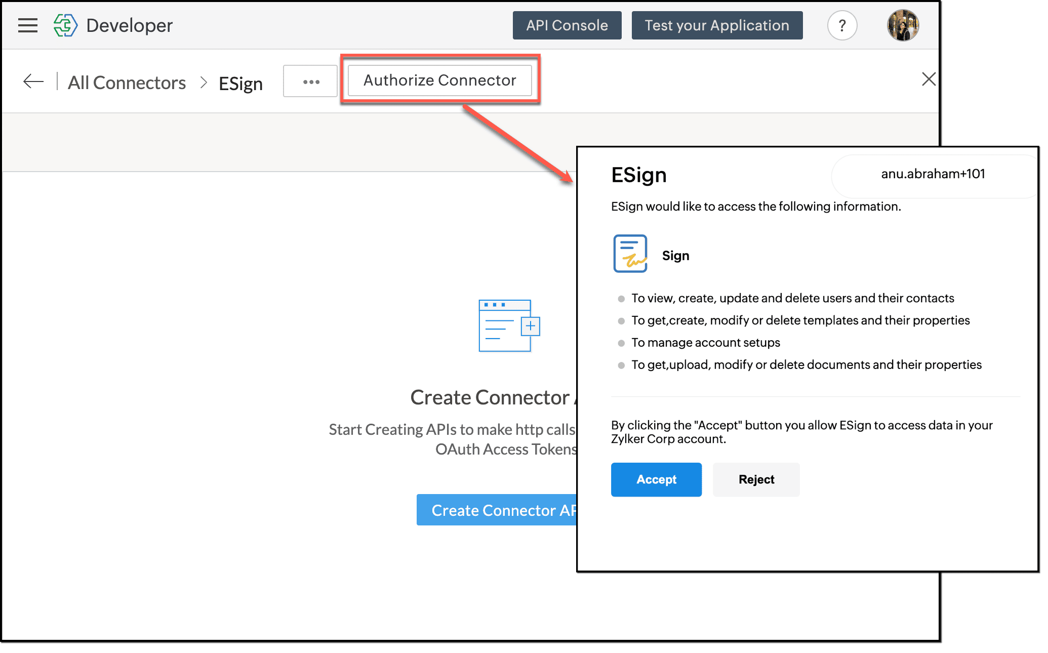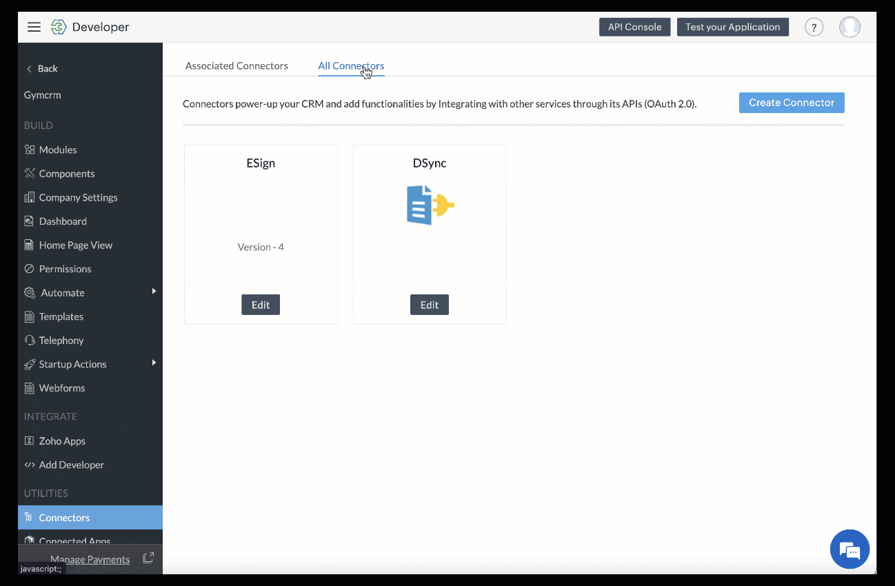 By creating and establishing a connector for Vertical Sign or Zoho Sign, you enable your solution to communicate with the Vertical Sign securely. The connector facilitates authentication and authorization processes, ensuring that data exchanges between your solution and Vertical Sign are encrypted and protected.