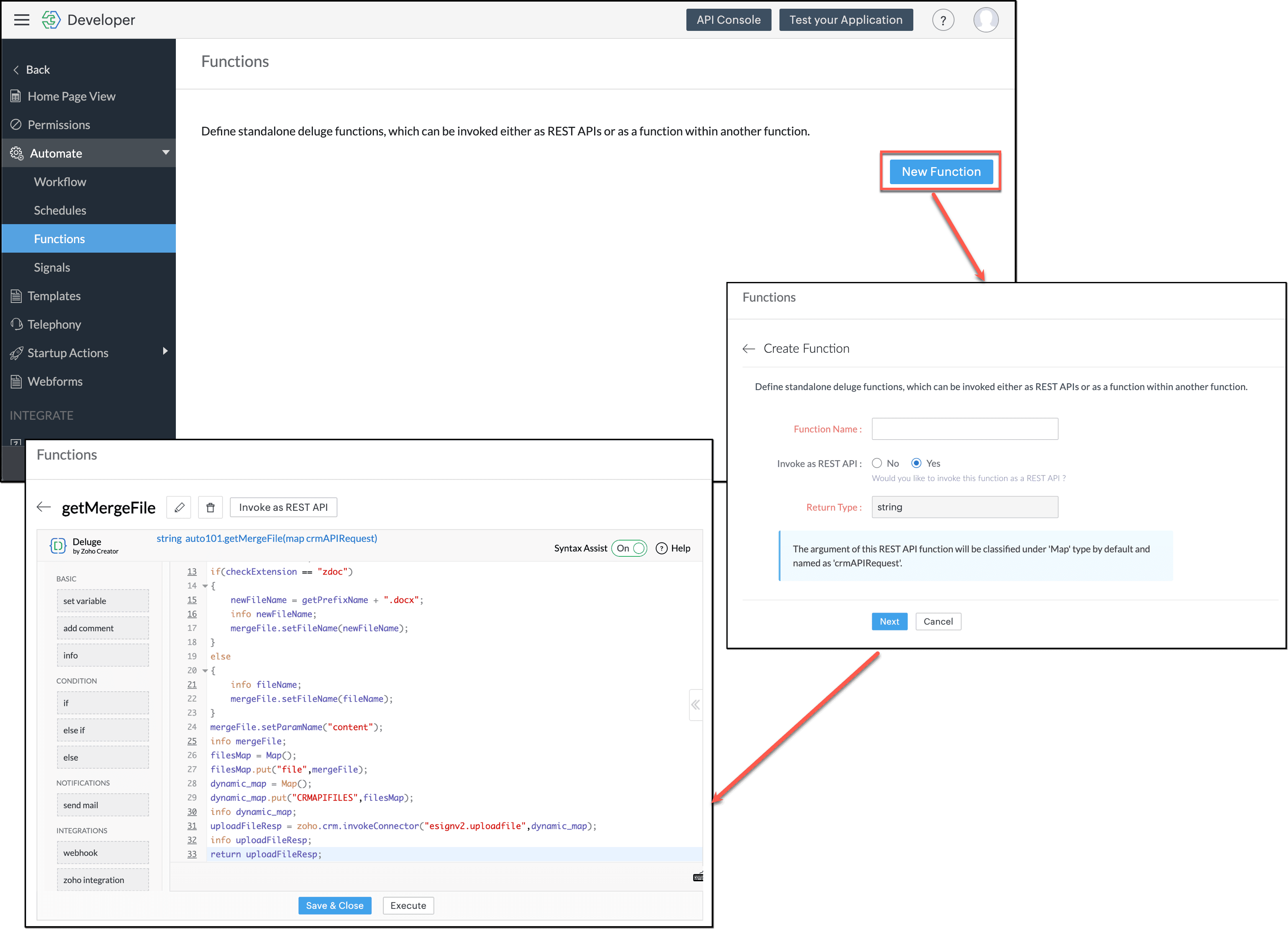 zohosigncallback_Function - The call back function to handle the callbacks, and update the CRM records according to the events. Click