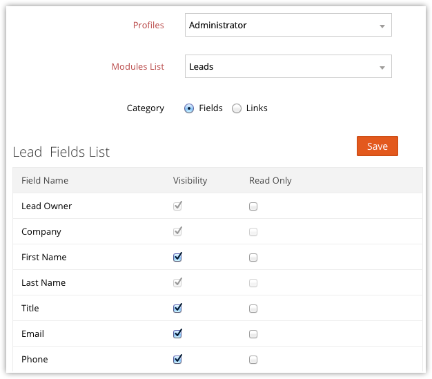 All the fields available in the selected module will be listed. By default, Visibility will be selected for all the fields.