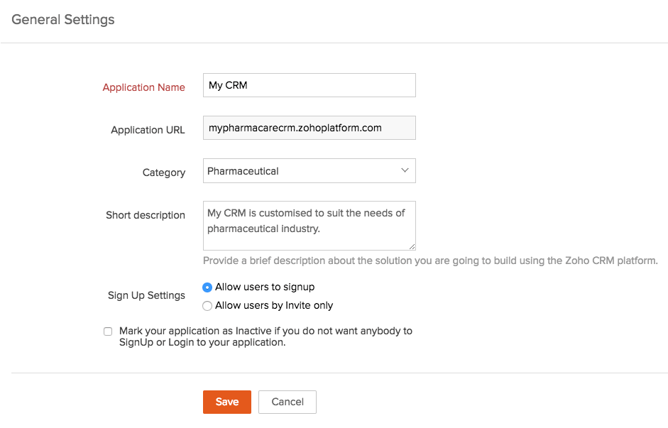 2. Mark your application as Inactive - This option is used to deactivate your application.