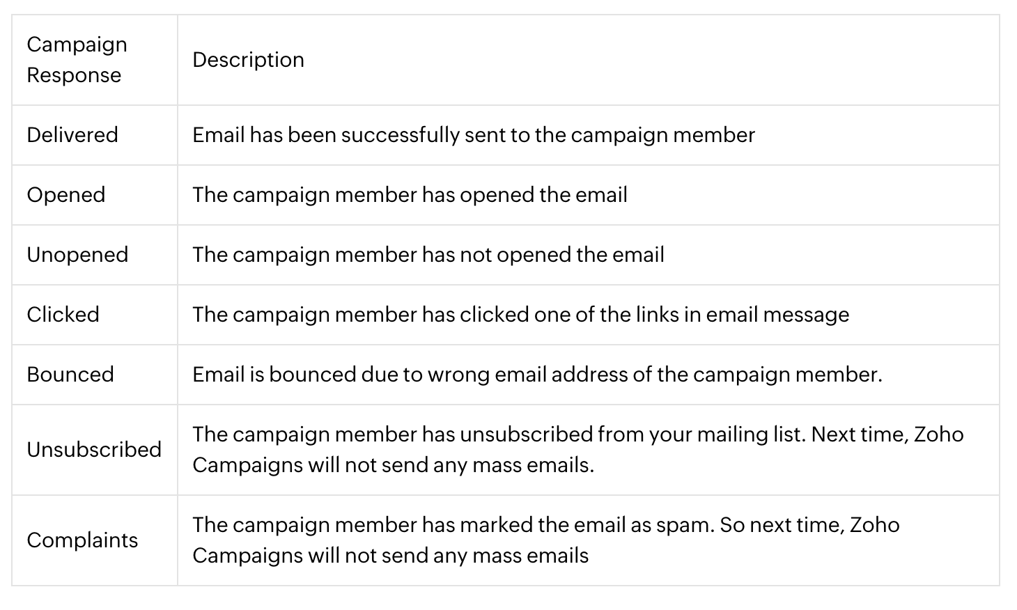 - They cannot add new data from CRM to Campaigns but use the existing leads or contacts in Zoho Campaigns for future campaigns.