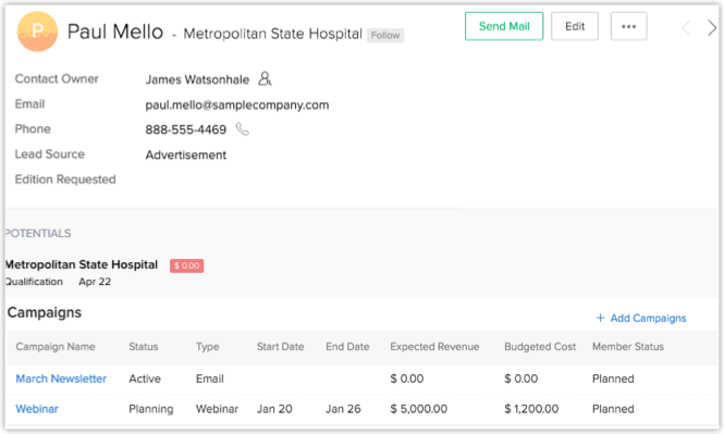 - In the Lead Details page, under Campaigns related list, view the list of email campaigns.