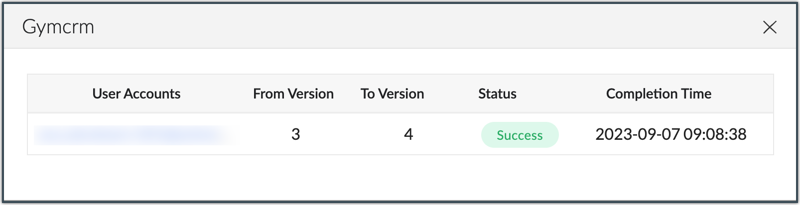- Click Upgrade in the confirmation dialog box. The customer's current solution instance will be updated to the latest version and will be indicated in the Version column of the chosen customer.