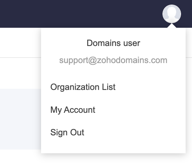 2. Click the profile icon in the top-right corner of the page and select the Organization List option.