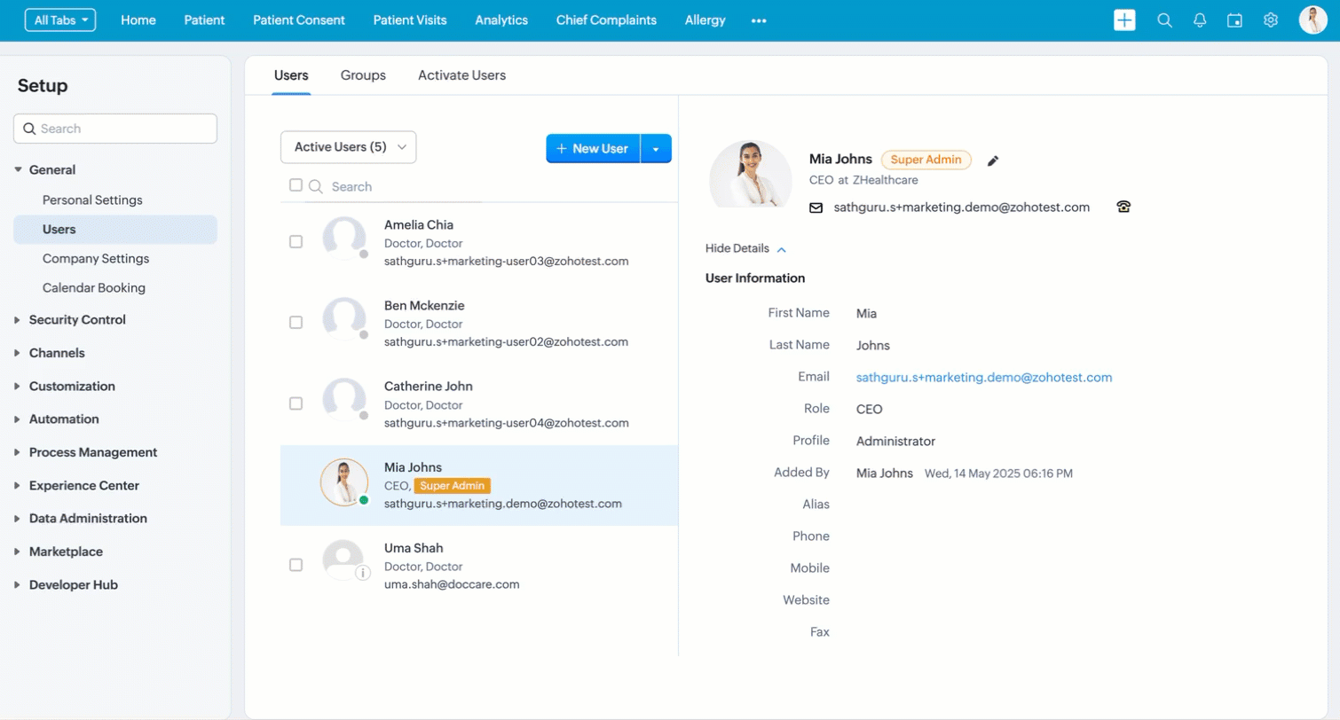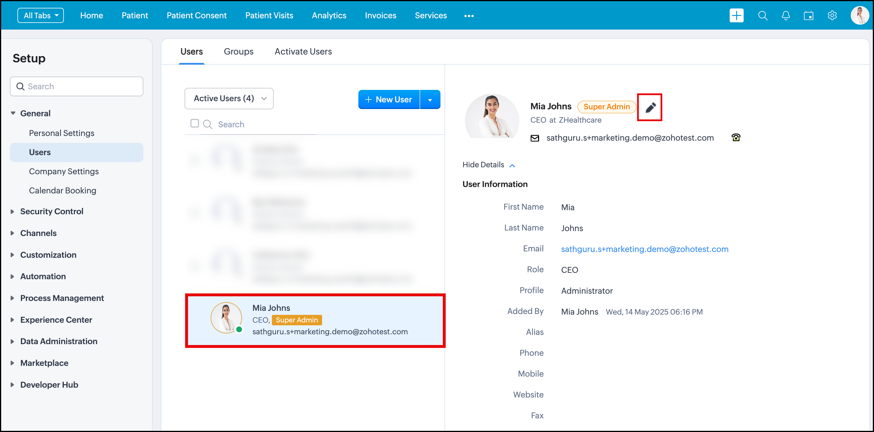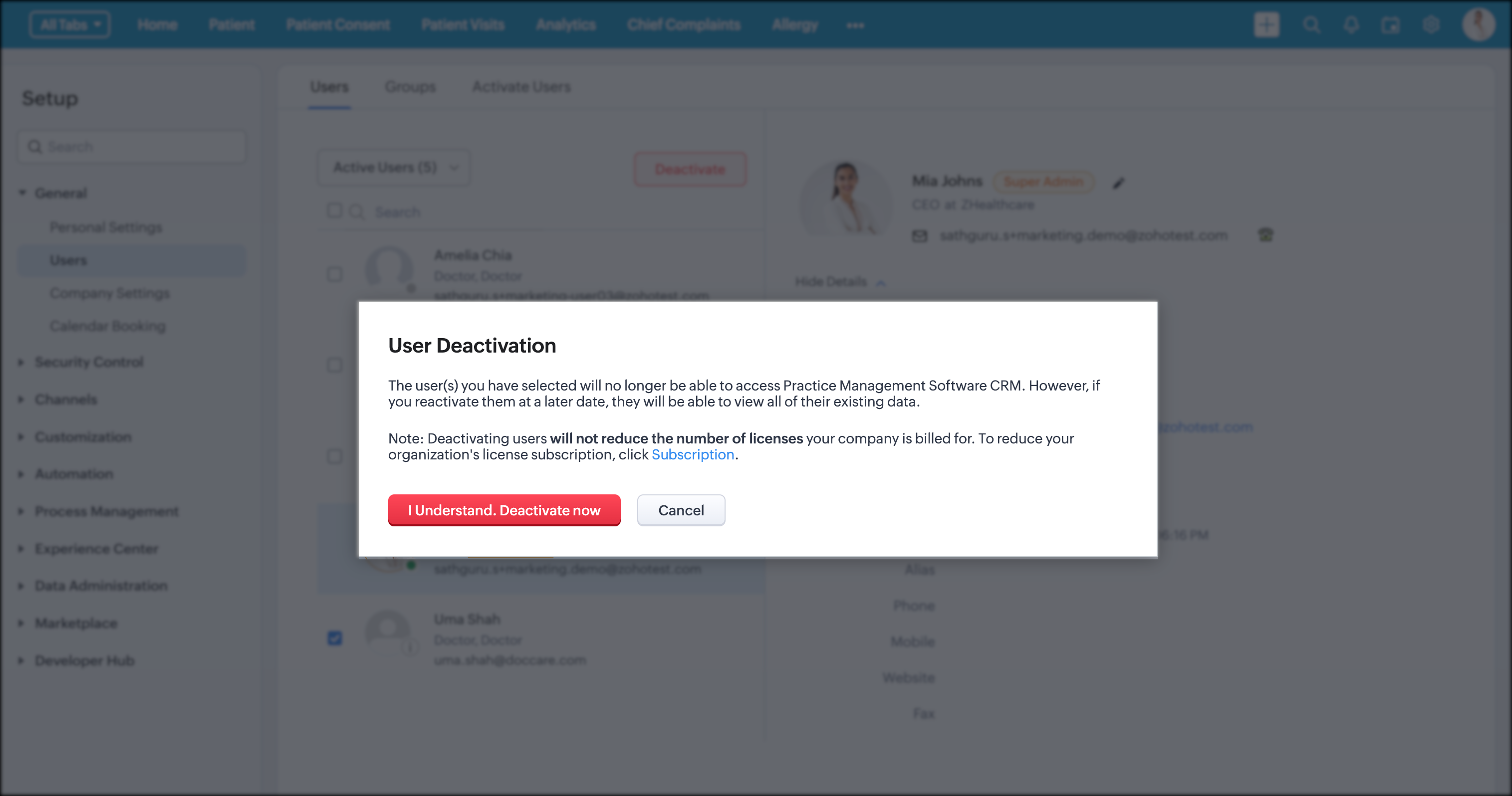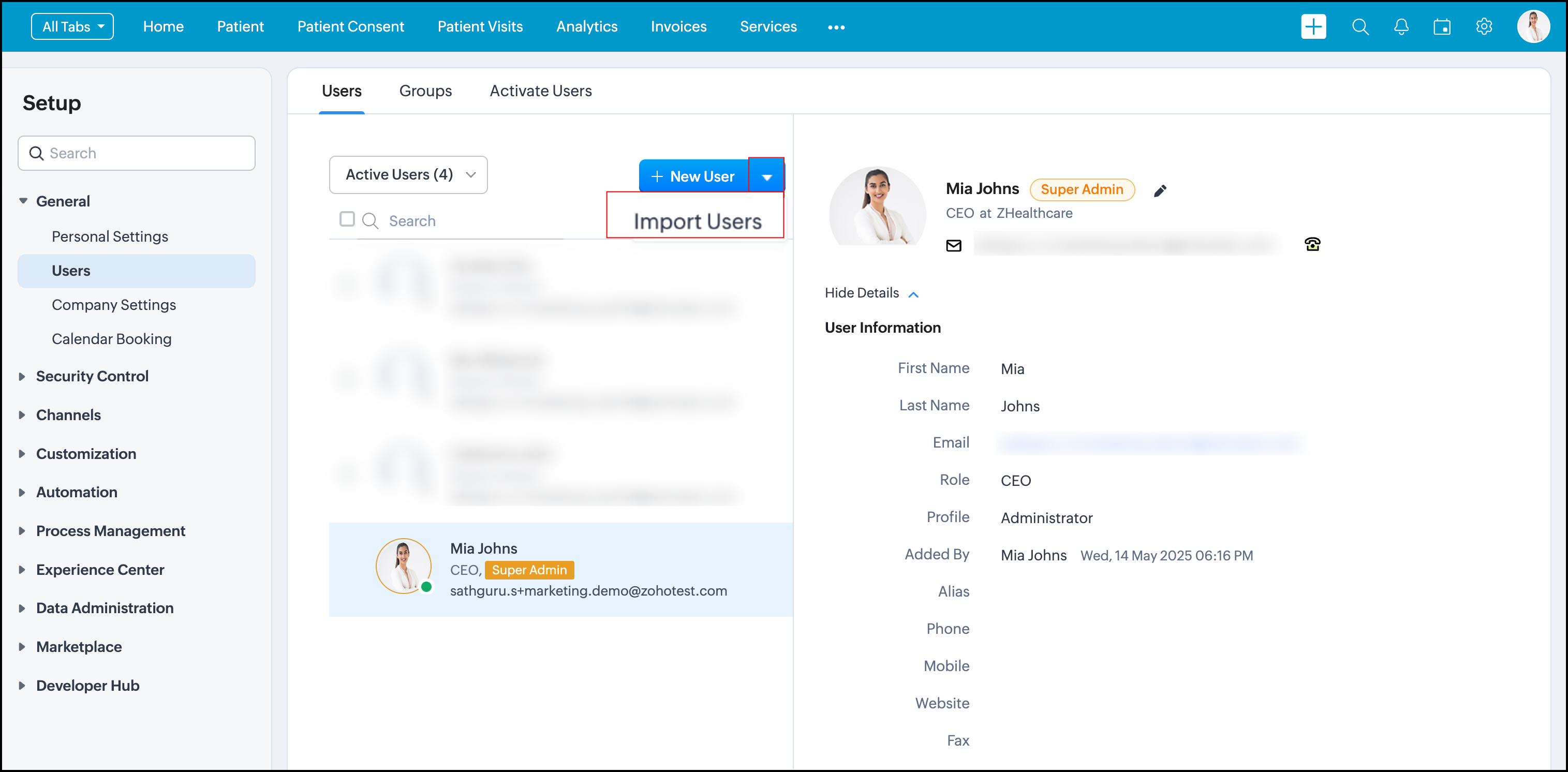 Administrators and any user with the Manage Users permission in their settings can add, import, modify, re-invite, activate and deactivate users to the account.