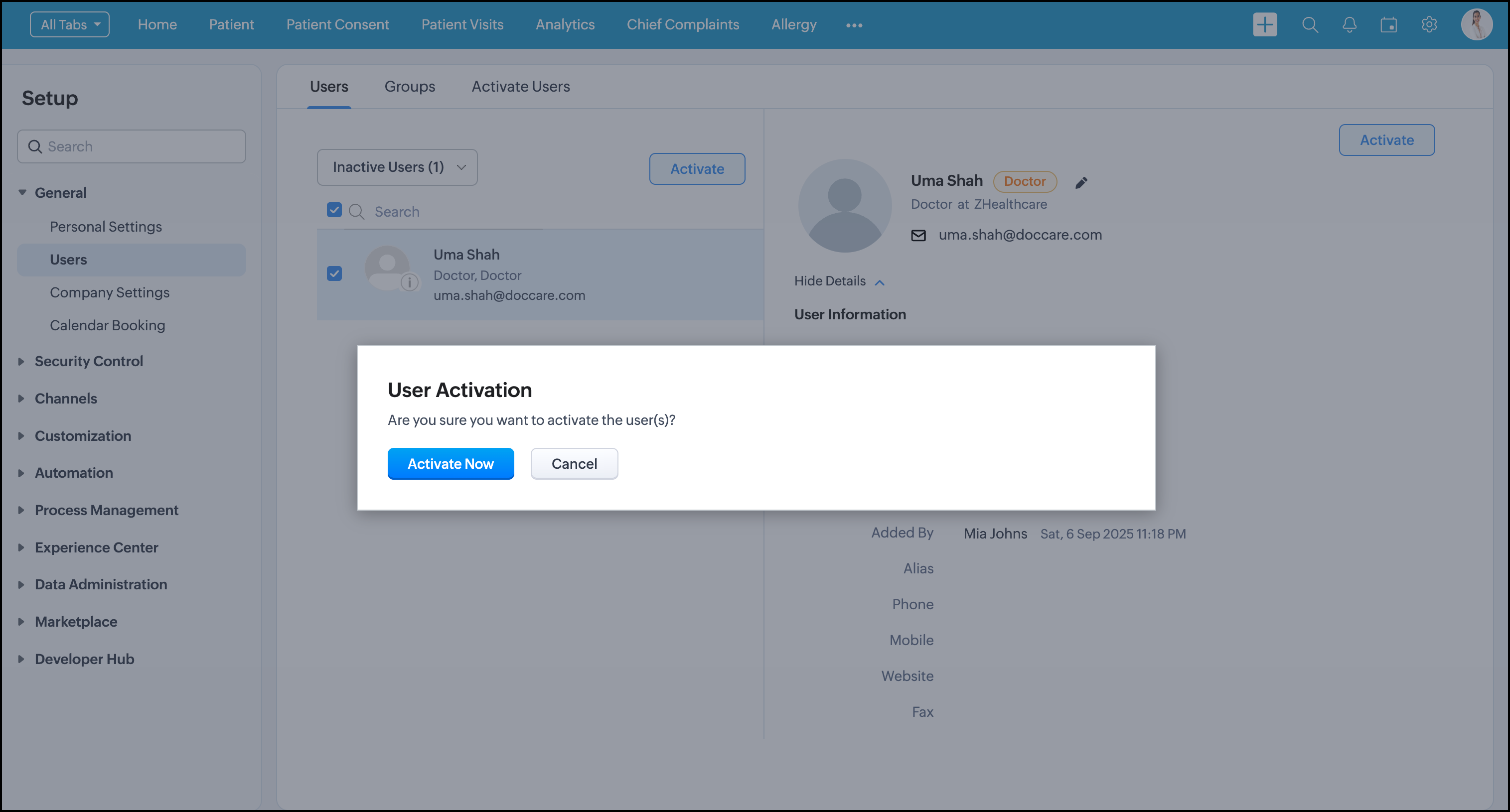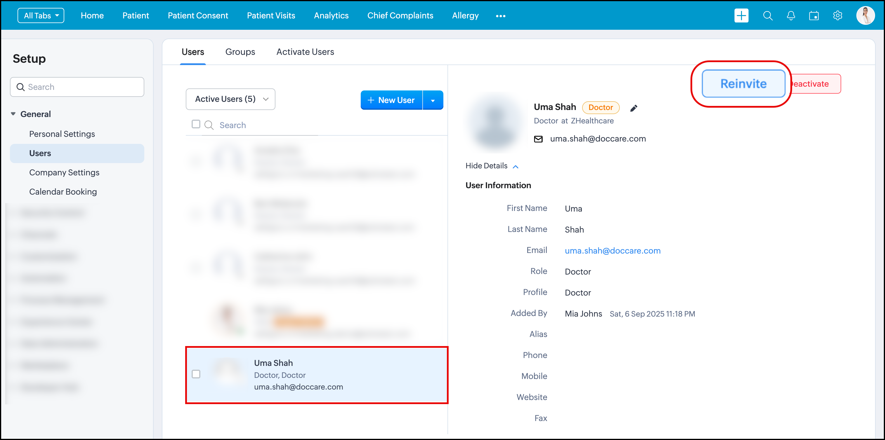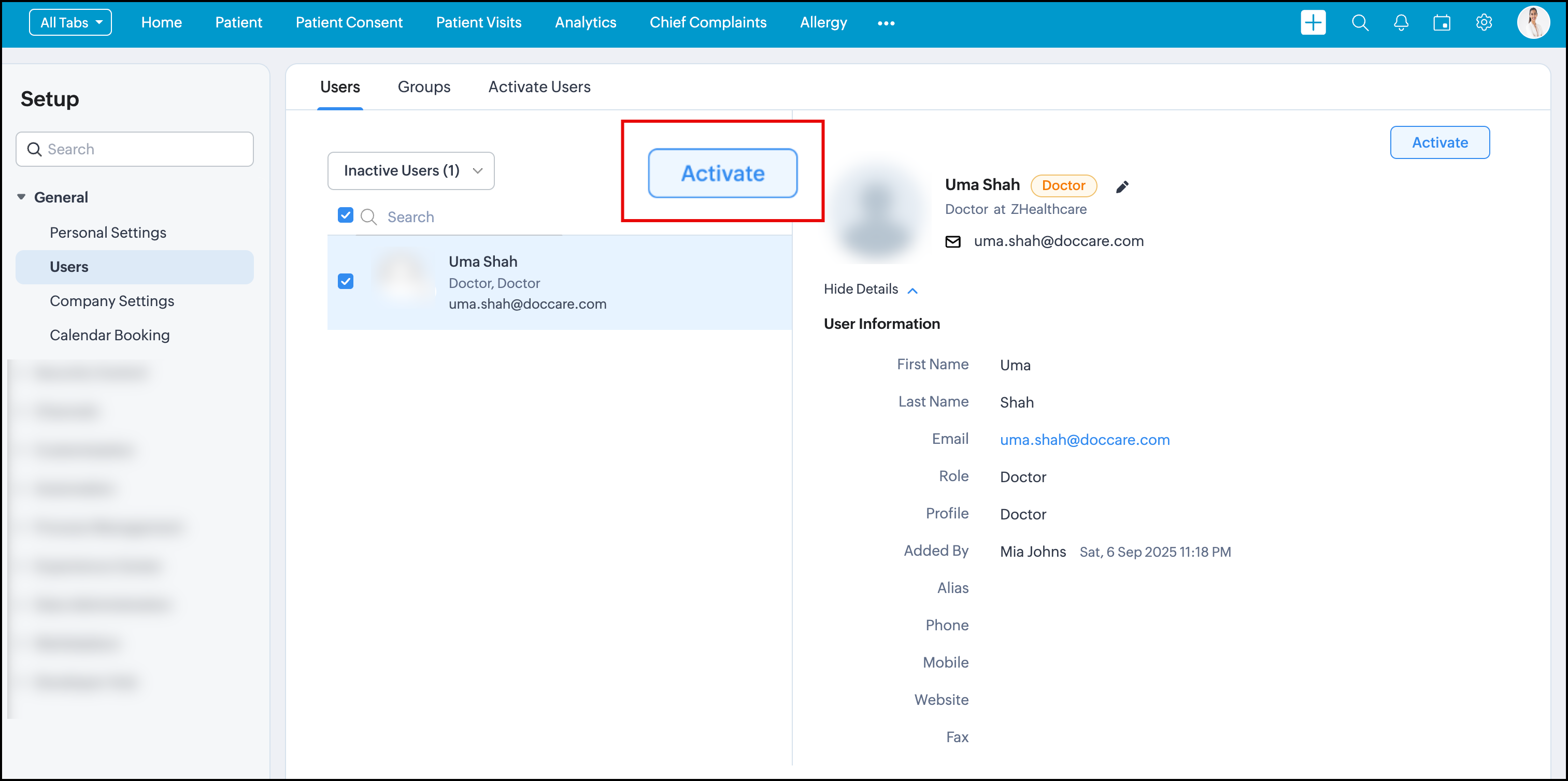 Active Users.4. Click Inactive users. The list of inactive users will appear.