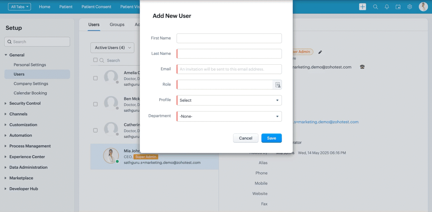 4. A pop-up menu will appear to add a new user. Enter the information for the following fields: