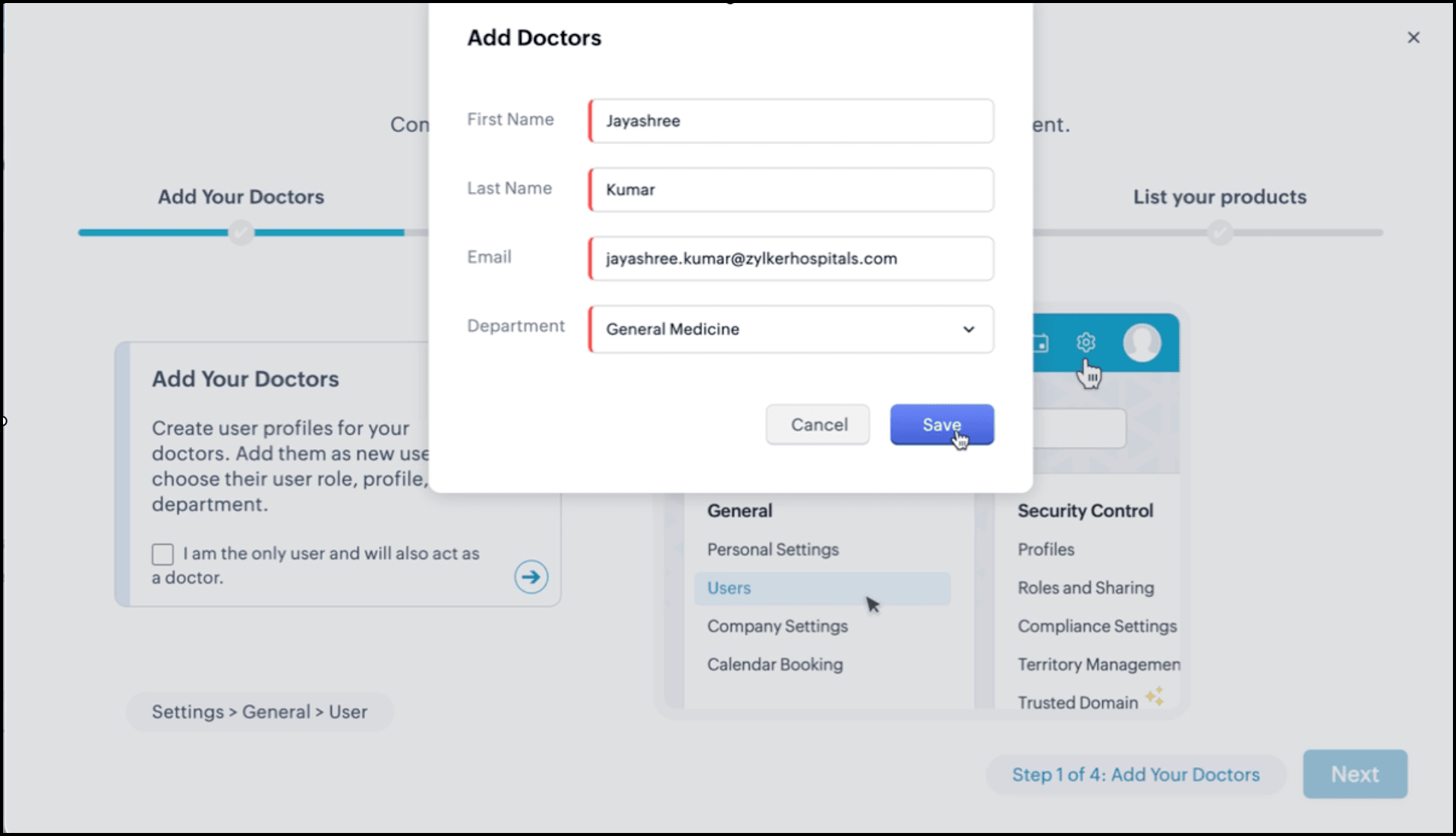 Before you can add doctor profiles, you'll need to create your first patient record. This gives you access to the tools needed to add care providers, set up specialties, create departments, and list your services.