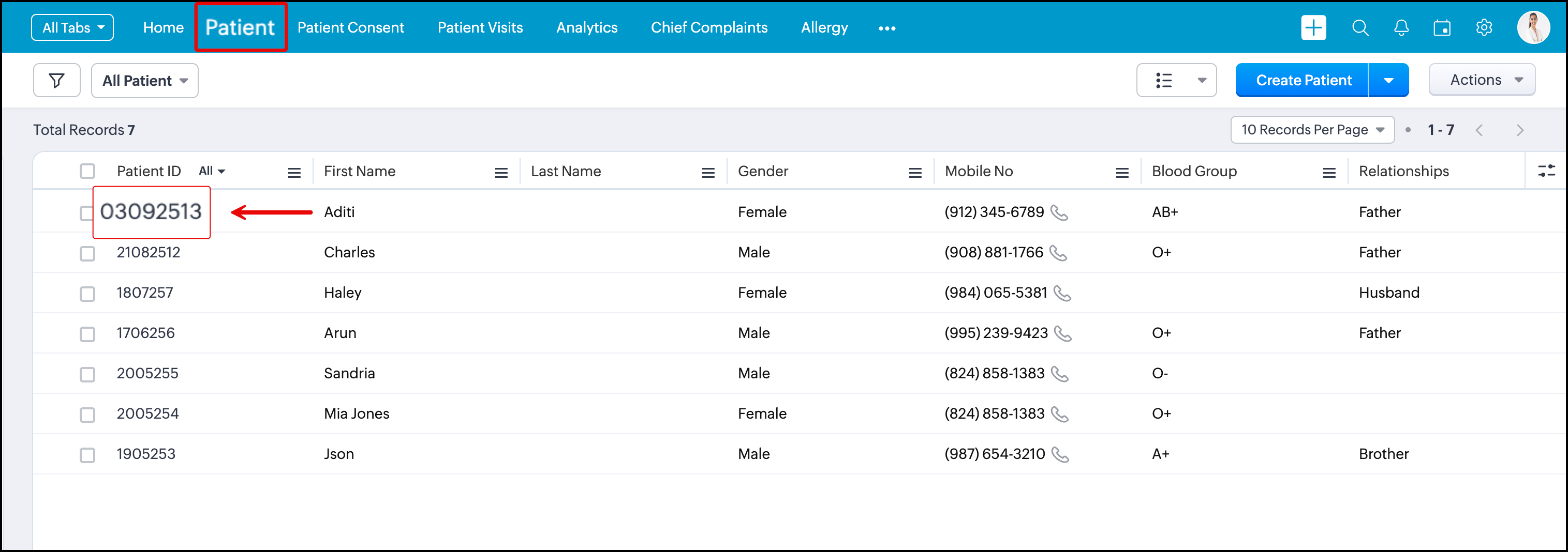 1. Go to the Patient tab and click the Patient ID. You will now be able to view your patient details.
