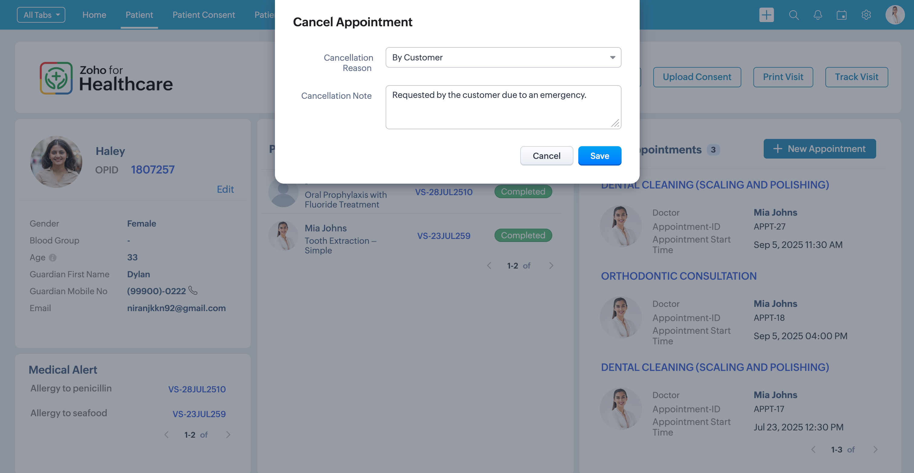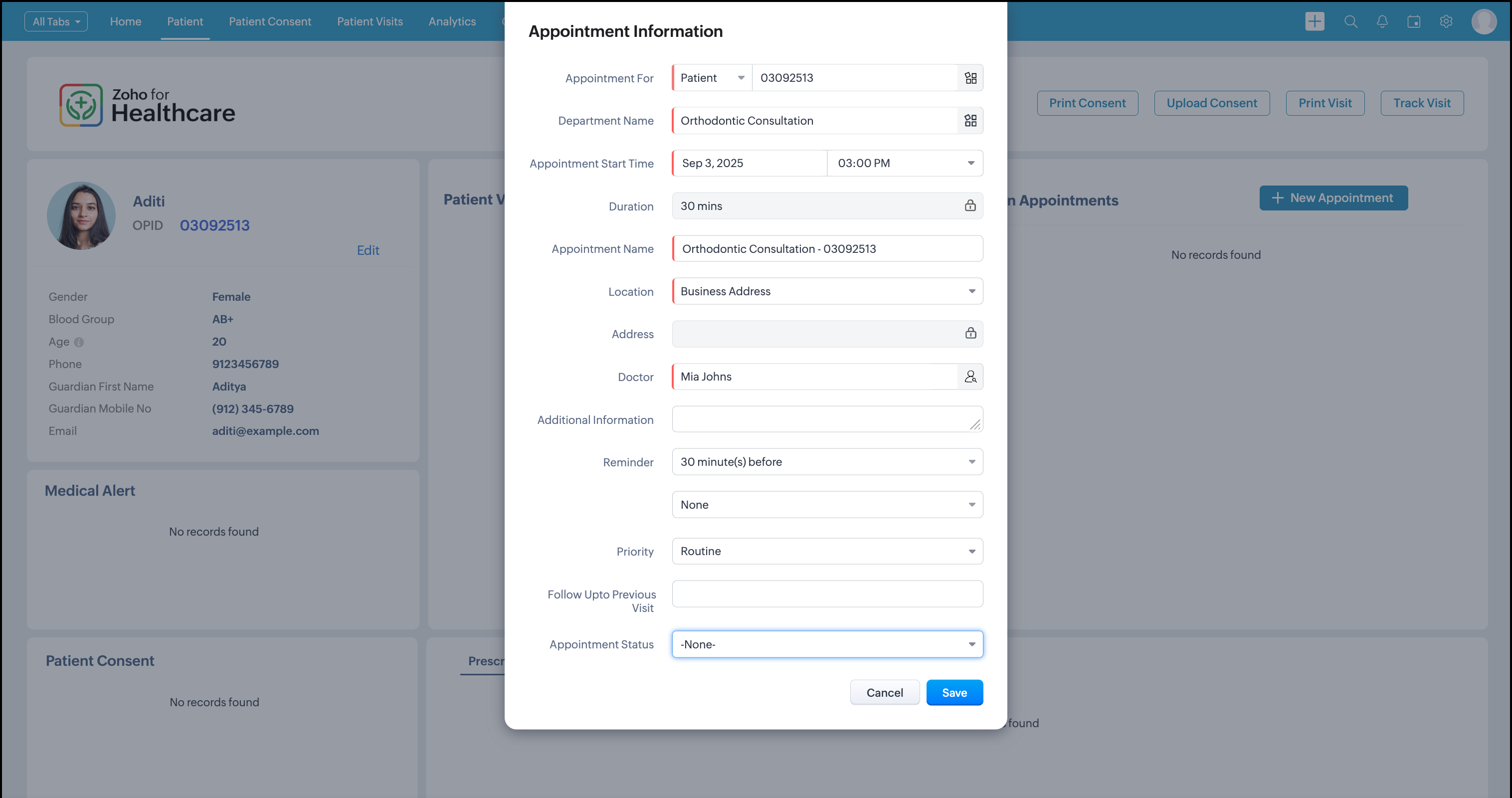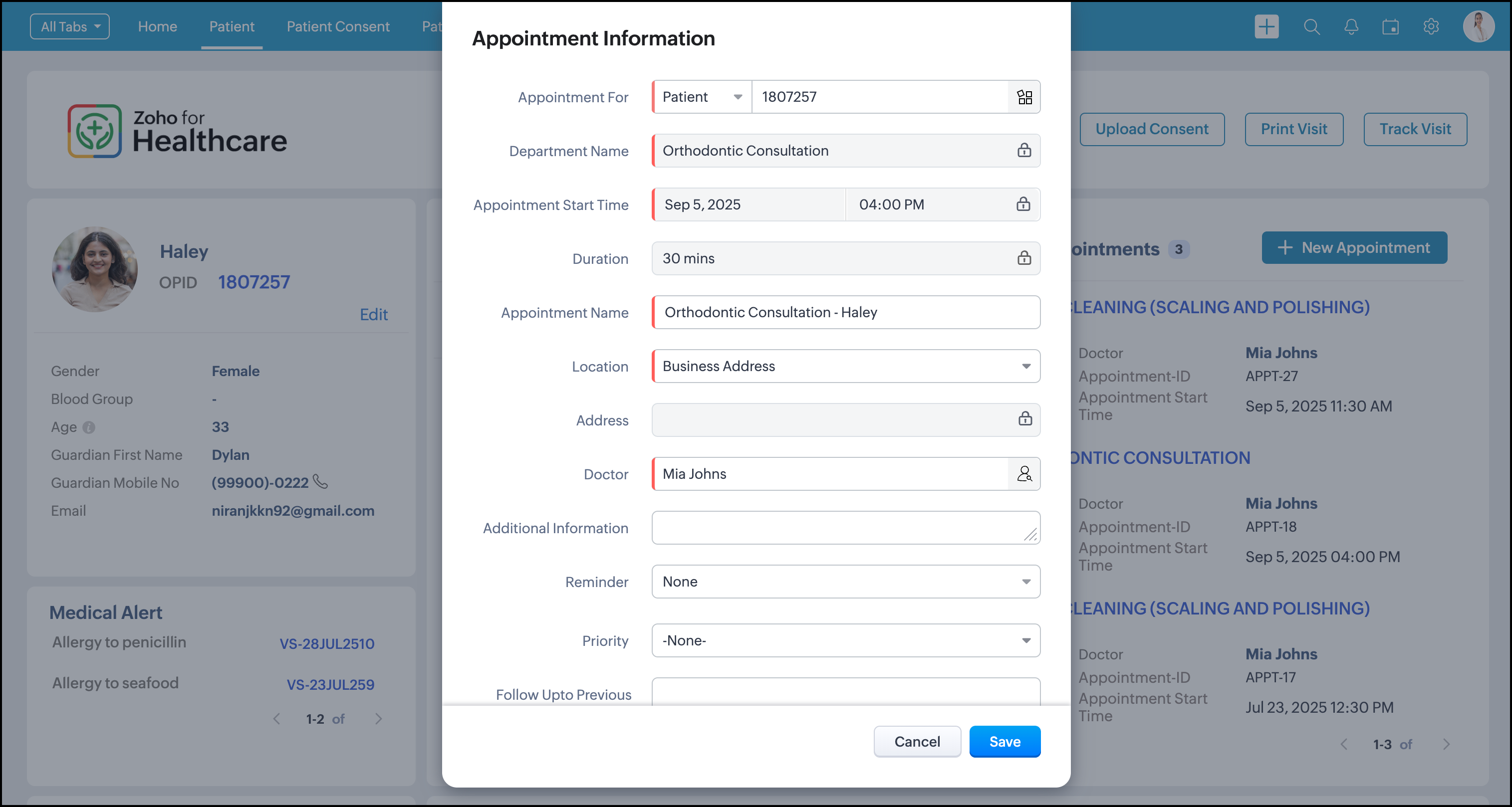 Alternatively, you can also create patient appointments using the Calendar widget.