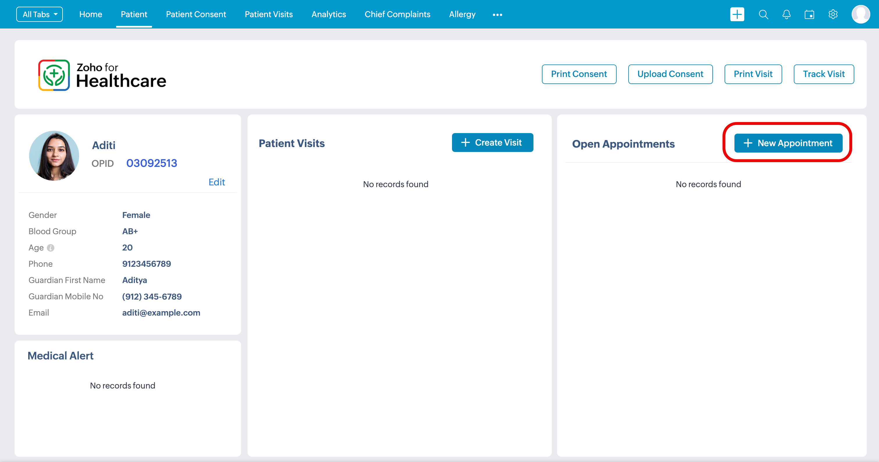 3. Navigate to the Open Appointments section on the right side and click the (+ New Appointment) button.
