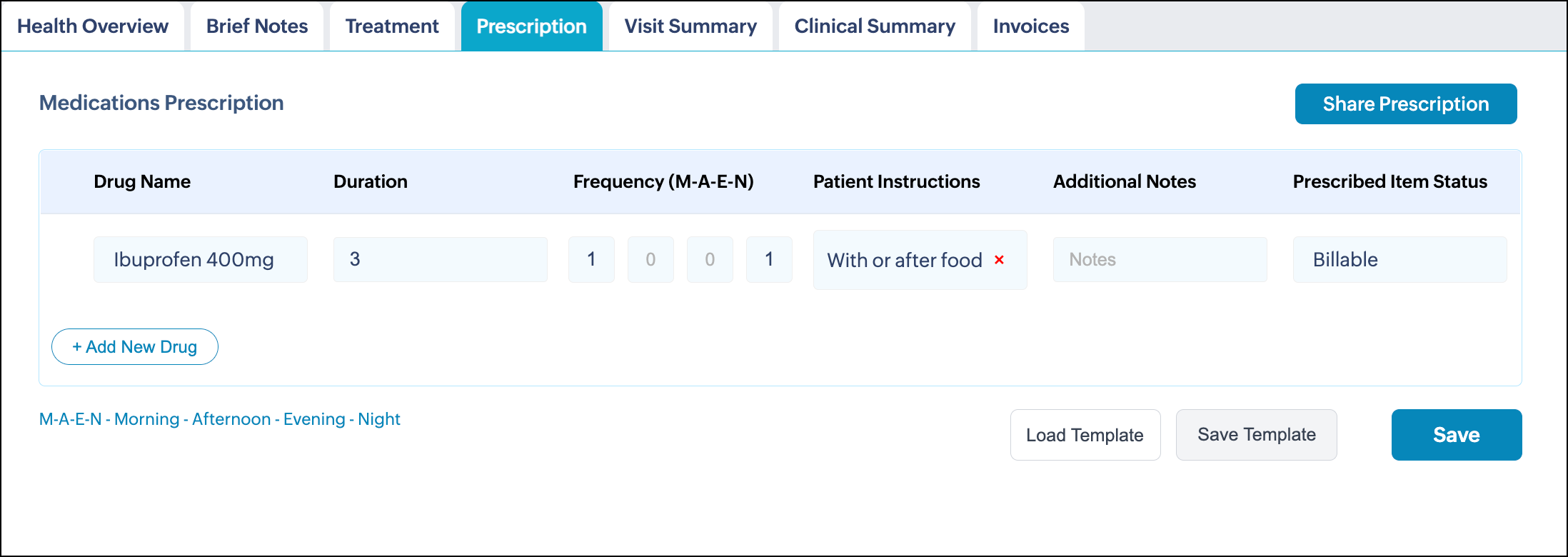 Post documenting the treatment plan, the doctor will now record and share the prescription details.
