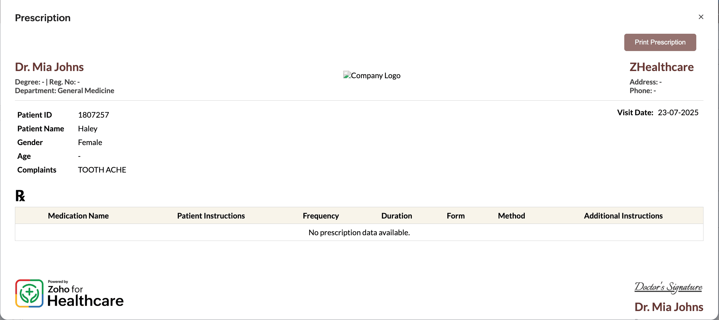 How to create and share prescriptions using practice management software | Zoho for Healthcare