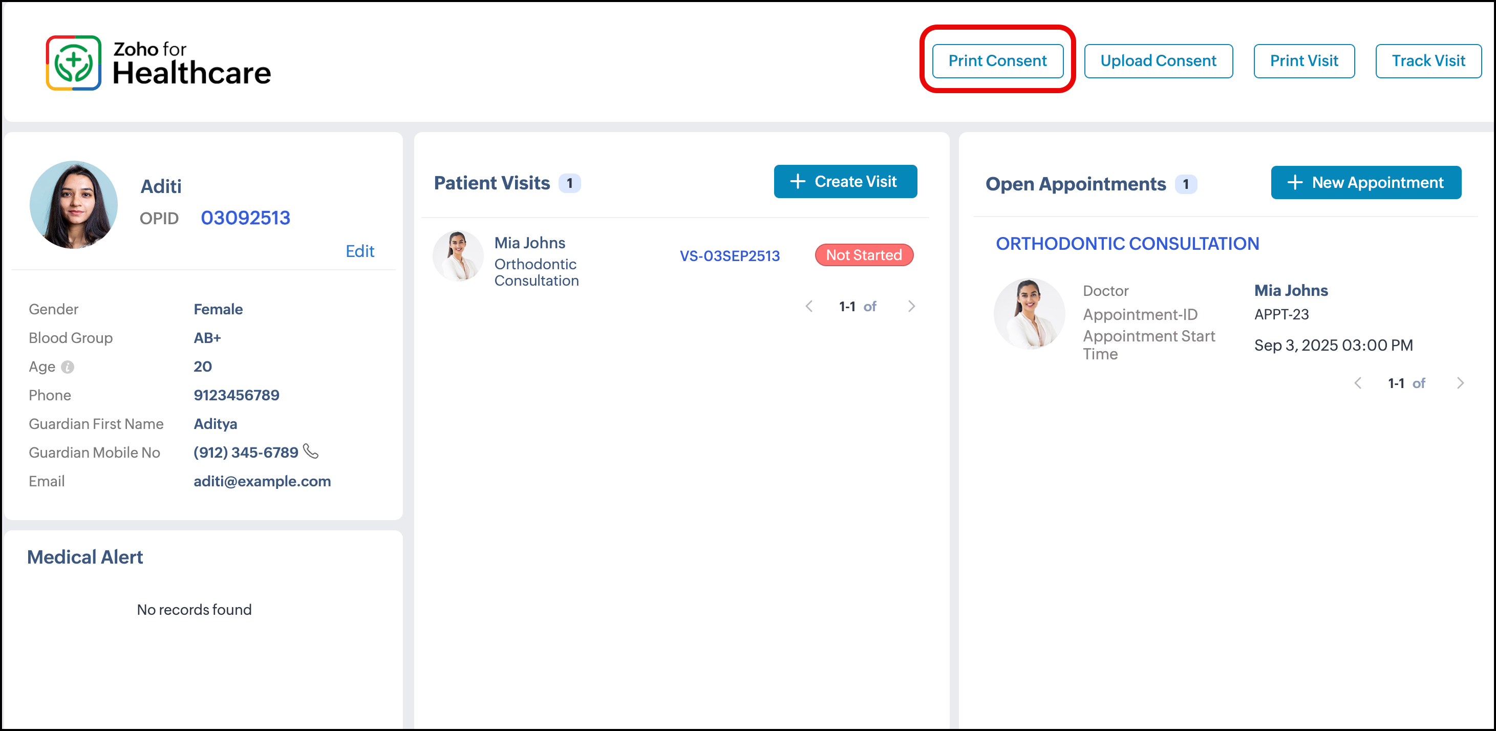3. Select Print Consent. You will now be able to view the print preview of the patient details.