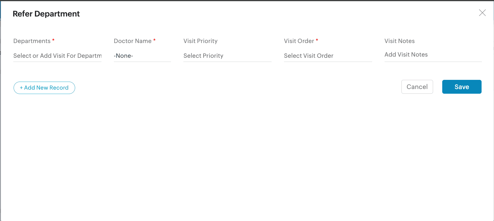 You can also refer the patient to multiple departments by clicking +Add New Record.