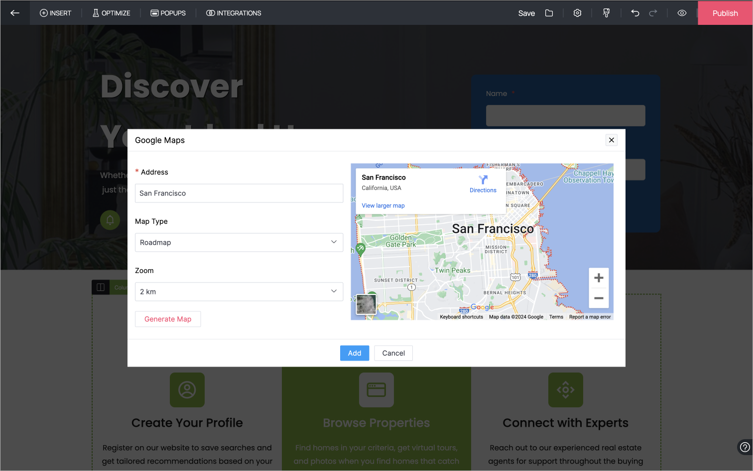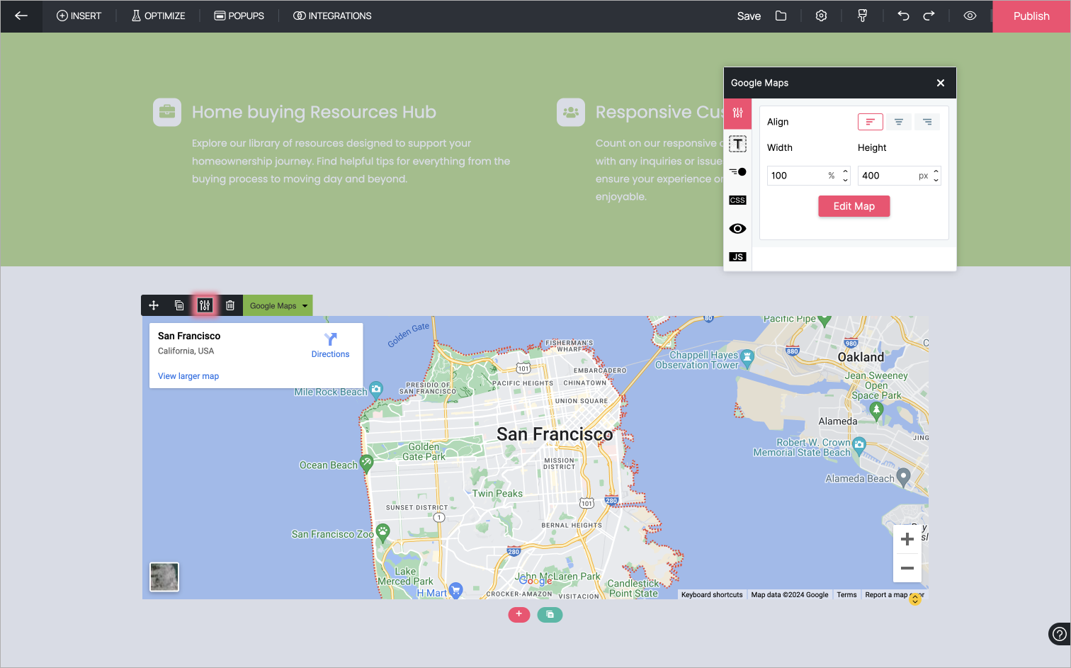 Adding Google Maps to a Landing Page | Zoho LandingPage User Guide