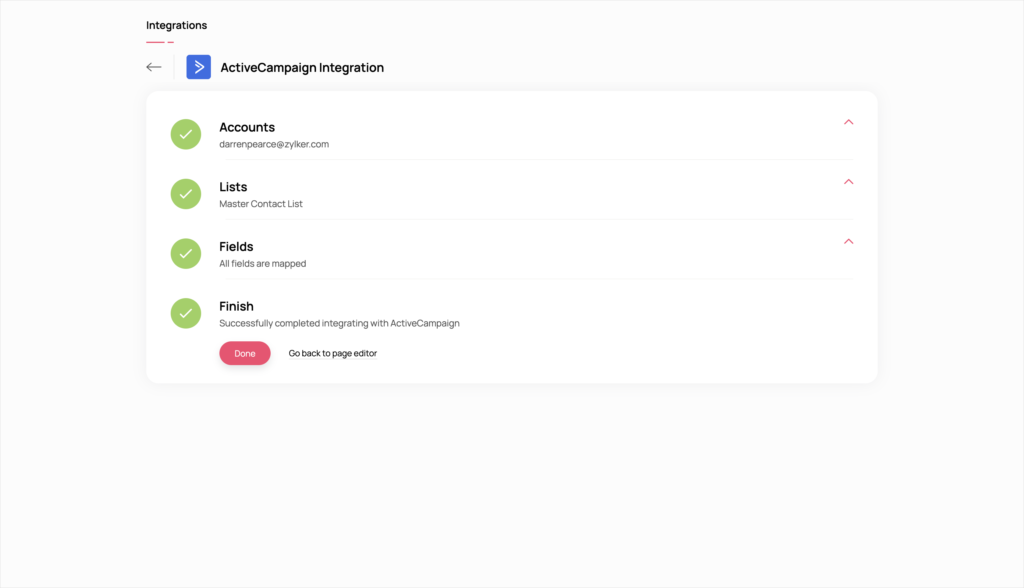 Integrating ActiveCampaign with a Landing Page | Zoho LandingPage User Guide