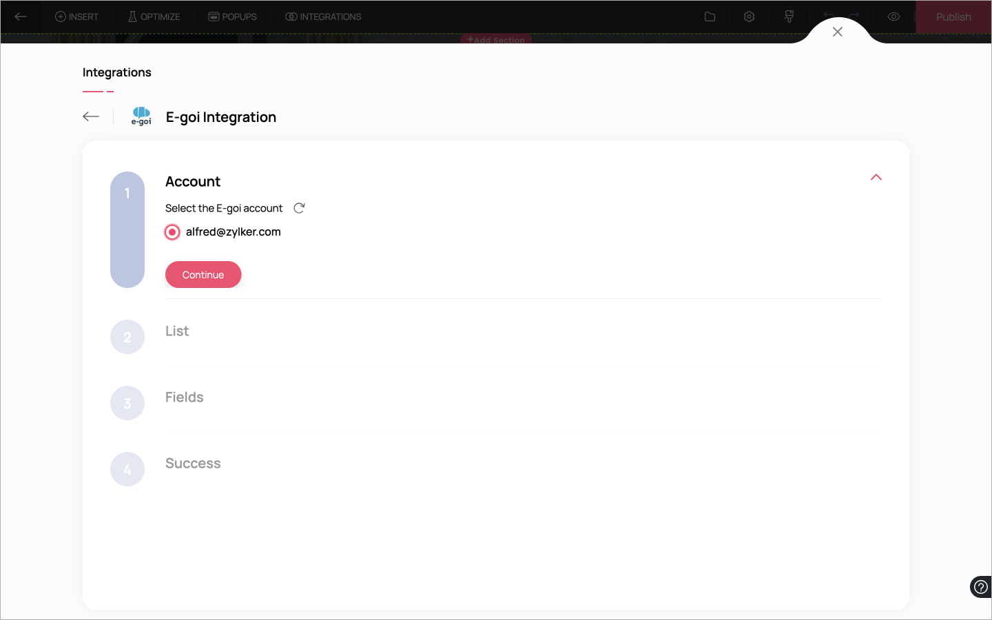 7. Once you have connected your E-goi account with your Zoho LandingPage portal, you can begin to integrate your landing pages with your lists in E-goi.