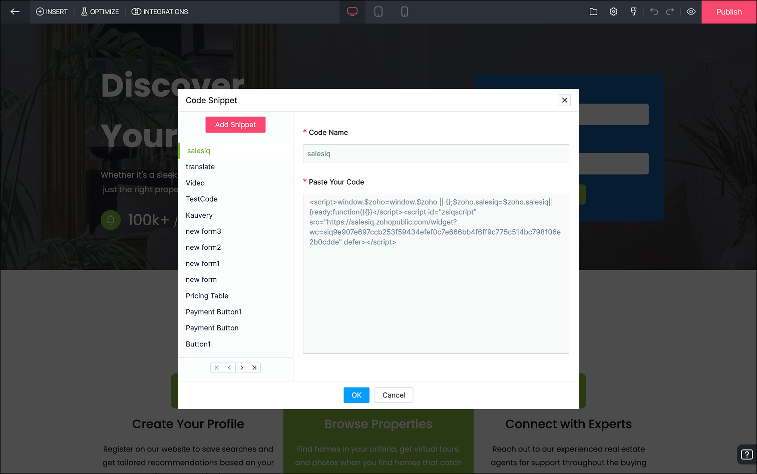 Adding a SalesIQ Widget to a Landing Page | Zoho LandingPage User Guide