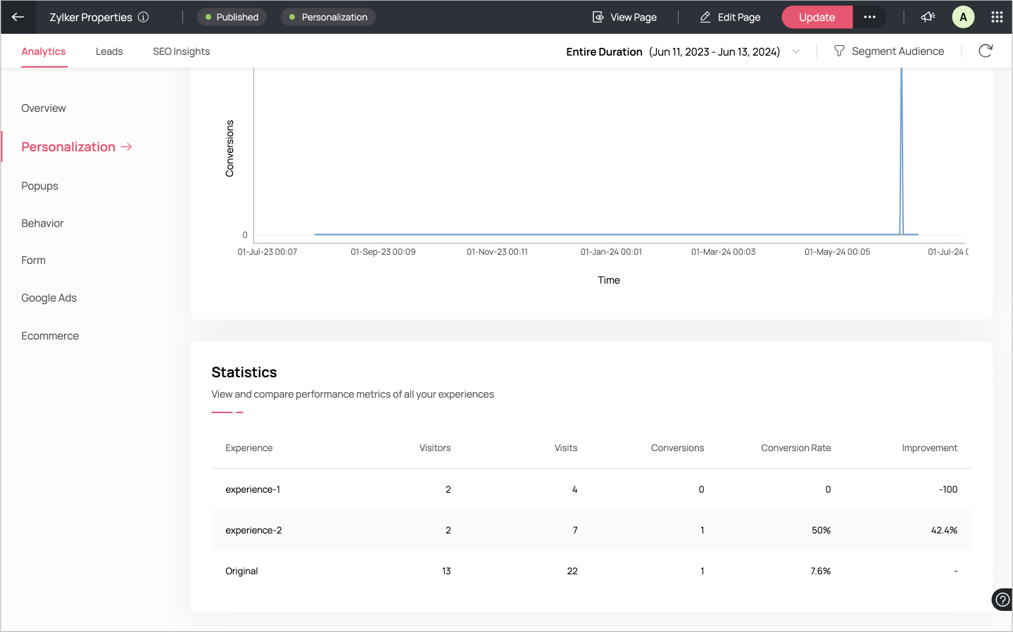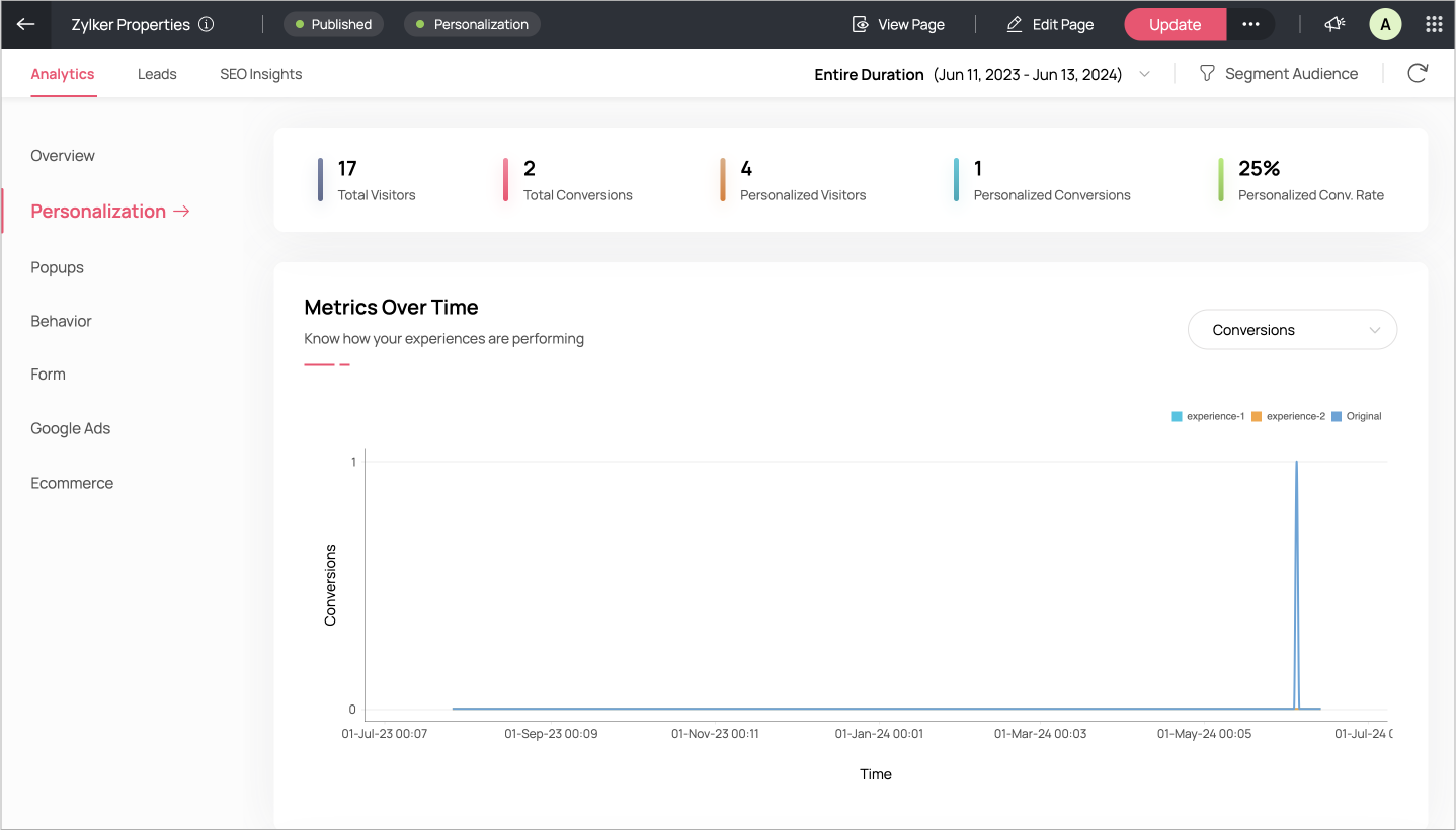 Zoho LandingPage provides robust analytical capabilities to track the performance of personalized landing page experiences. By analyzing visitor behavior and engagement metrics, you can optimize your personalization strategy to drive higher conversions and achieve your marketing objectives.