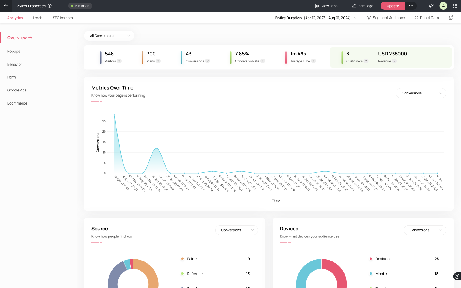 Monitor your landing page performance over time, understand your audience better, and make data-driven decisions to achieve your goals.