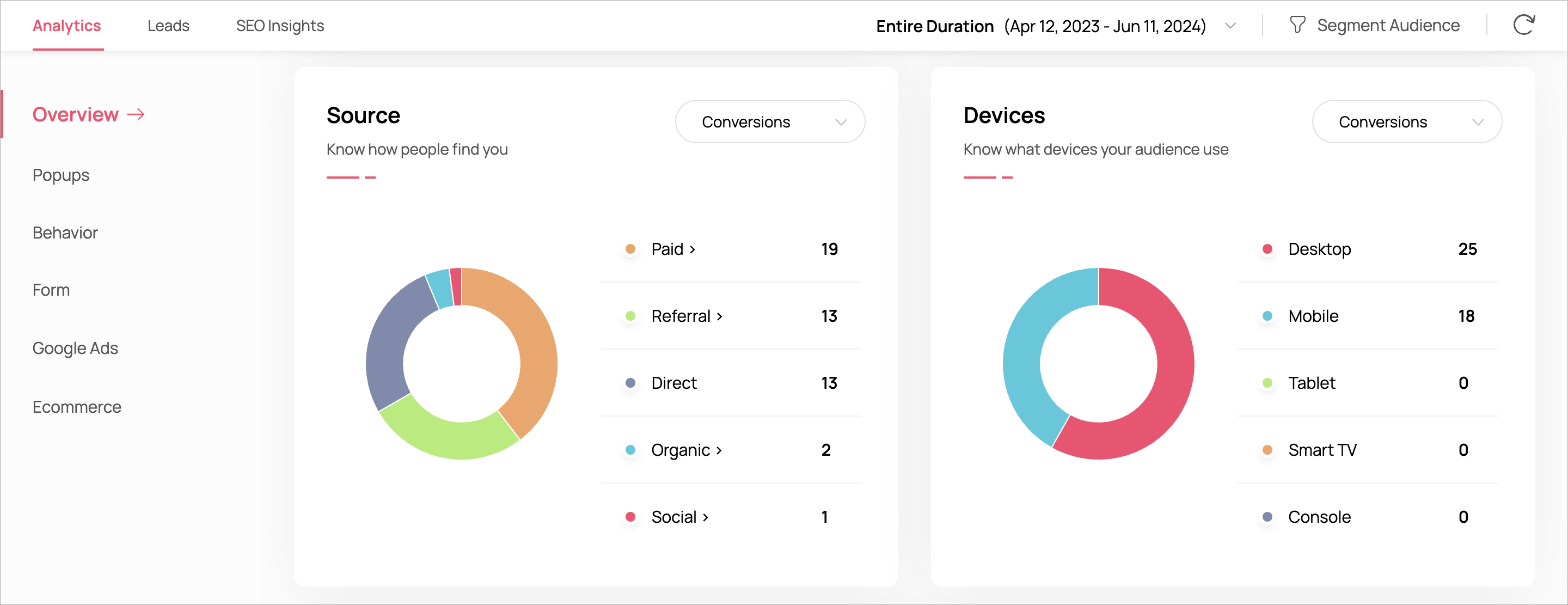 2. Get to know the origins of your visitors and the devices utilized to access your landing page. The types of source includes: