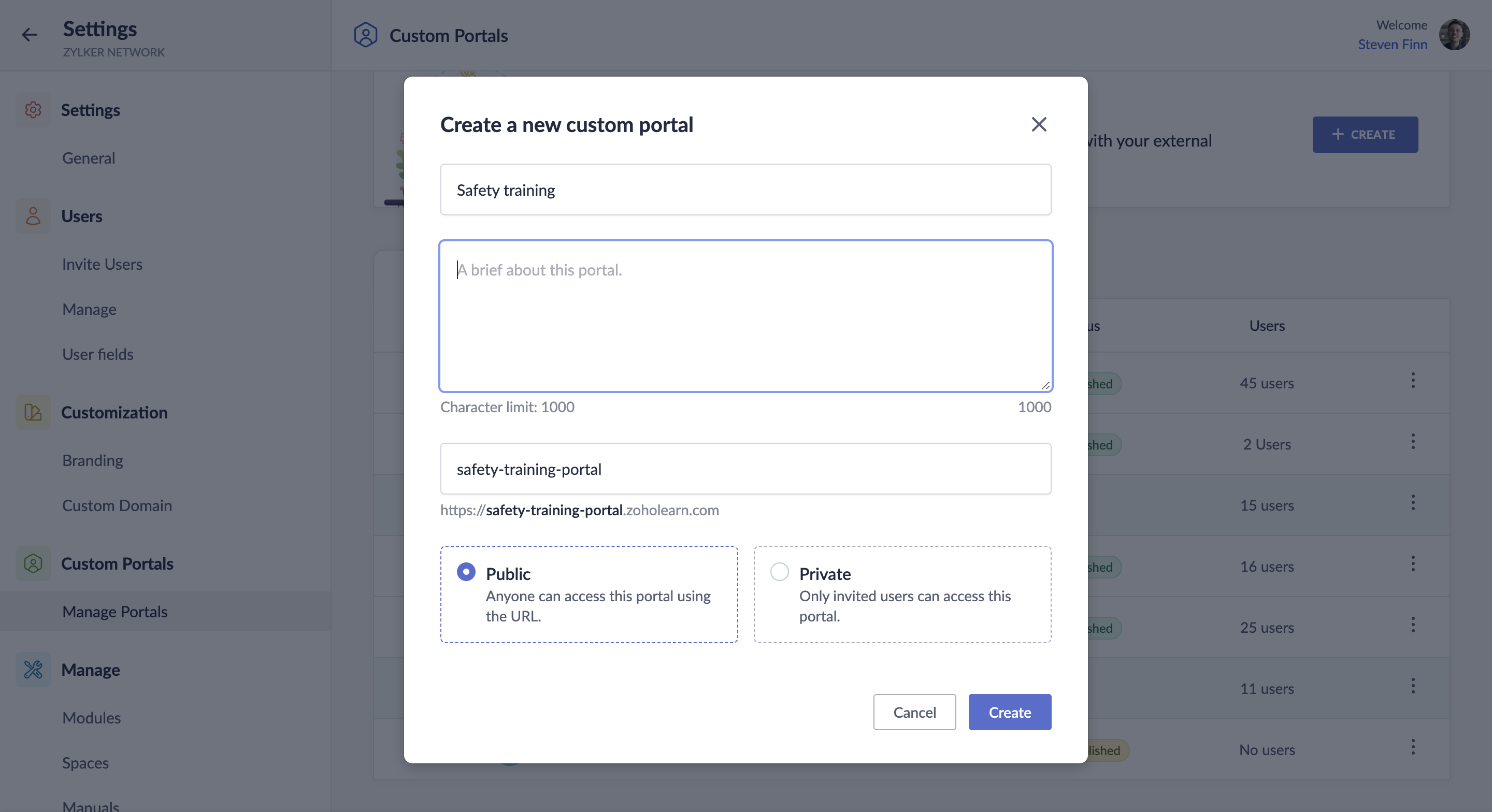 Maintain your brand's identity in your custom portal with customizable logo, banners, and color selection capabilities. Creating a branded portal helps build a connection with your external users and promotes brand identity and trust. Zoho Learn ...
