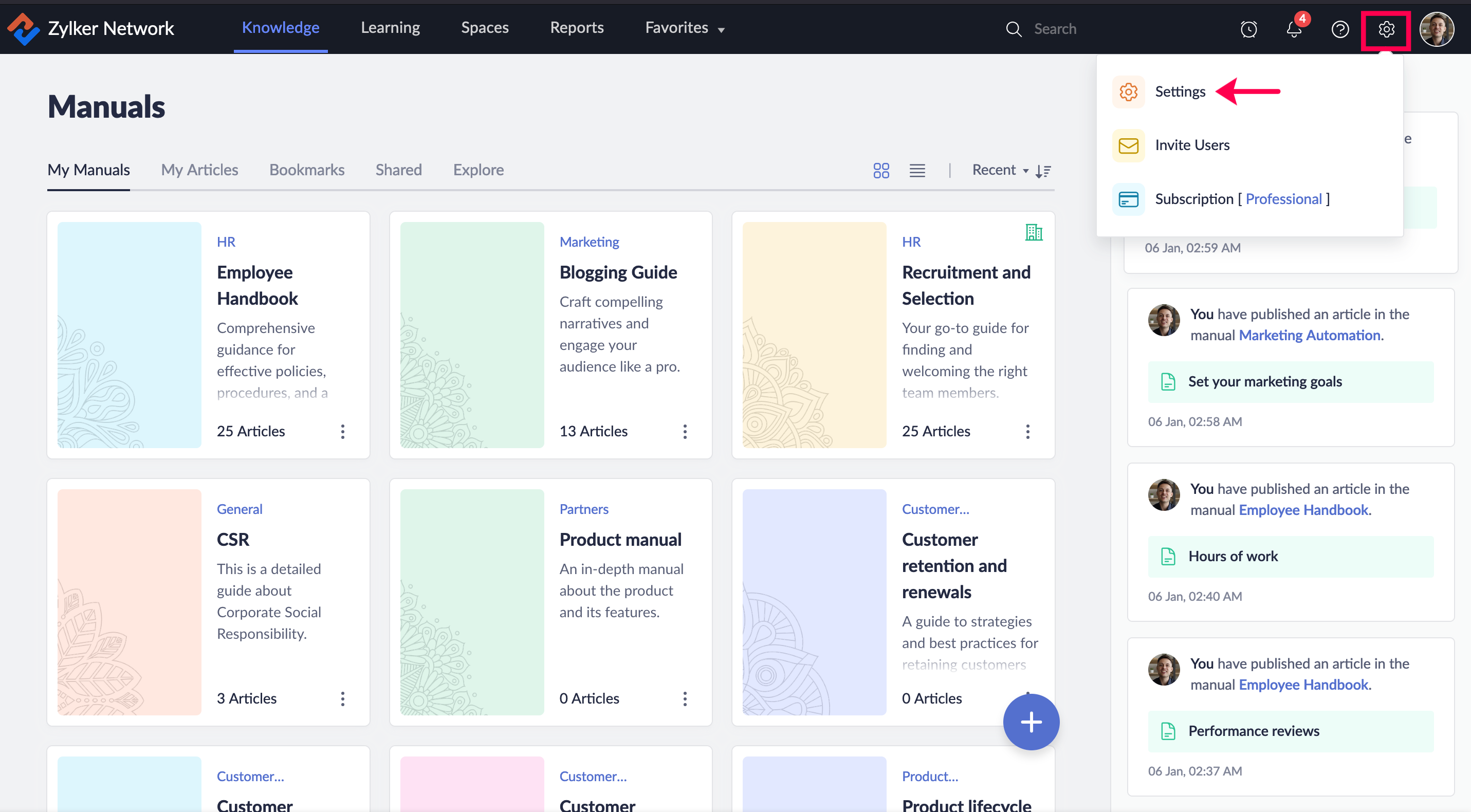 Maintain your brand's identity in your custom portal with customizable logo, banners, and color selection capabilities. Creating a branded portal helps build a connection with your external users and promotes brand identity and trust. Zoho Learn ...