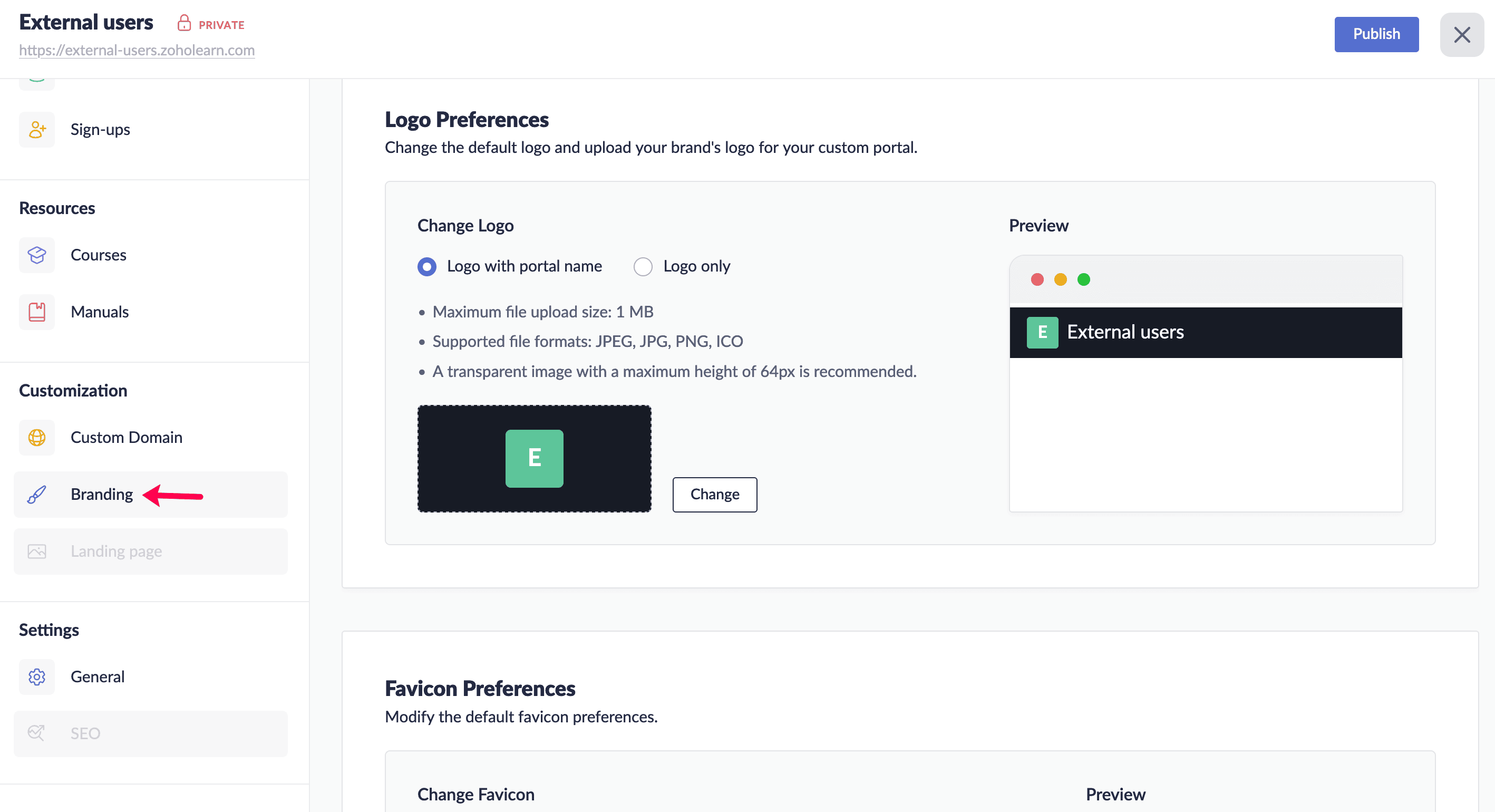 Customers subscribed to Zoho One or the Professional plan of Zoho Learn are entitled to a custom portal along with 5 custom portal users at no additional cost. This allows your organization to create a branded, secure space for external stakeholders such as clients, partners, or trainees to access learning content seamlessly.