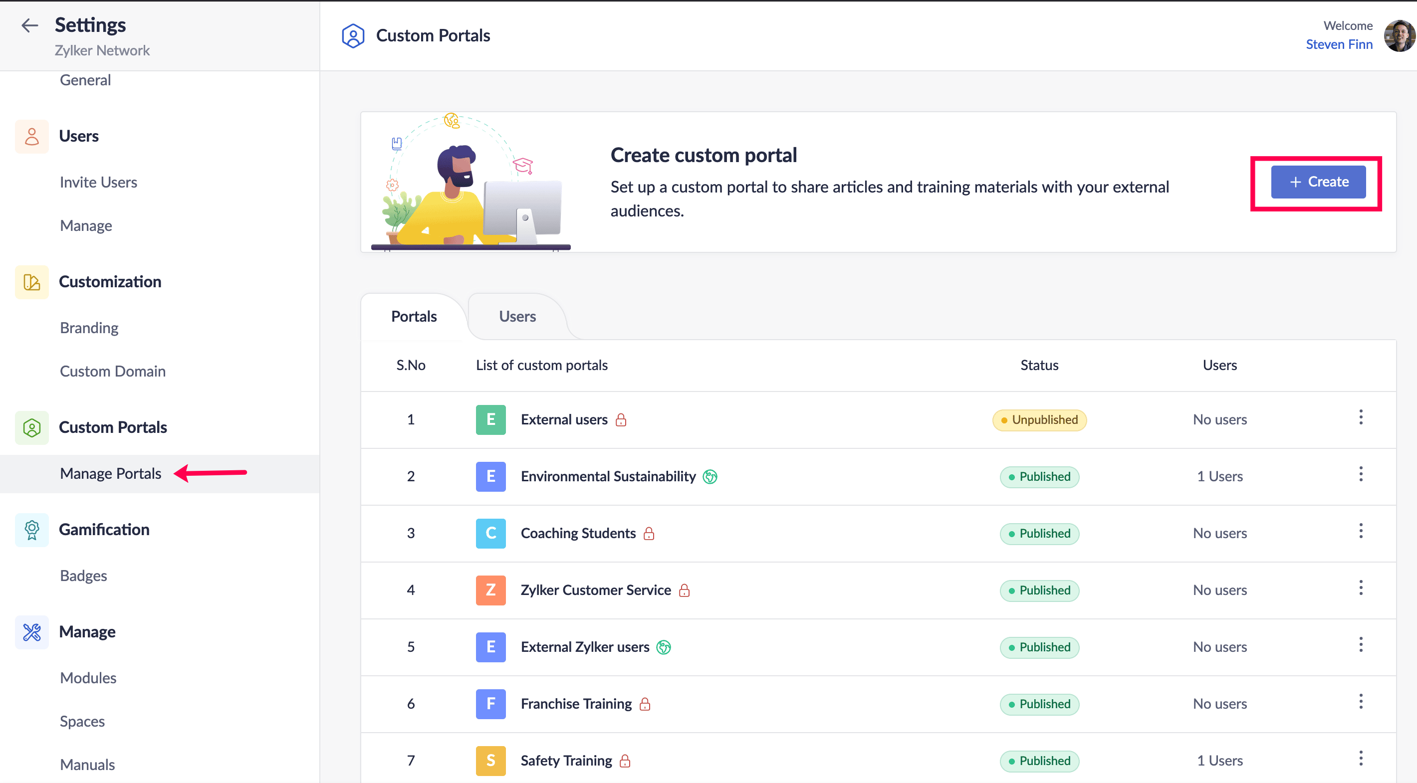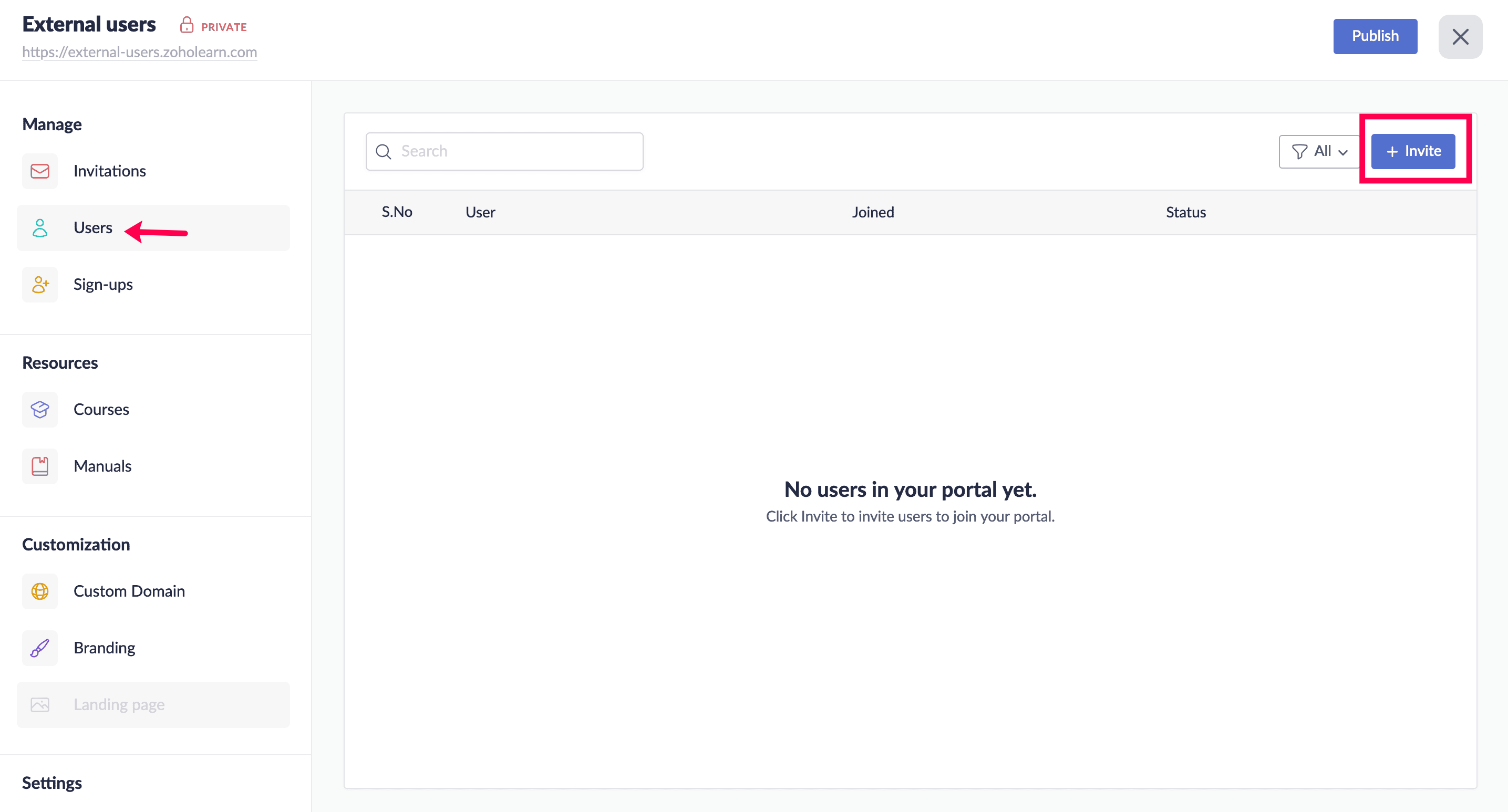 To know more about inviting and managing users in your portal, click here.