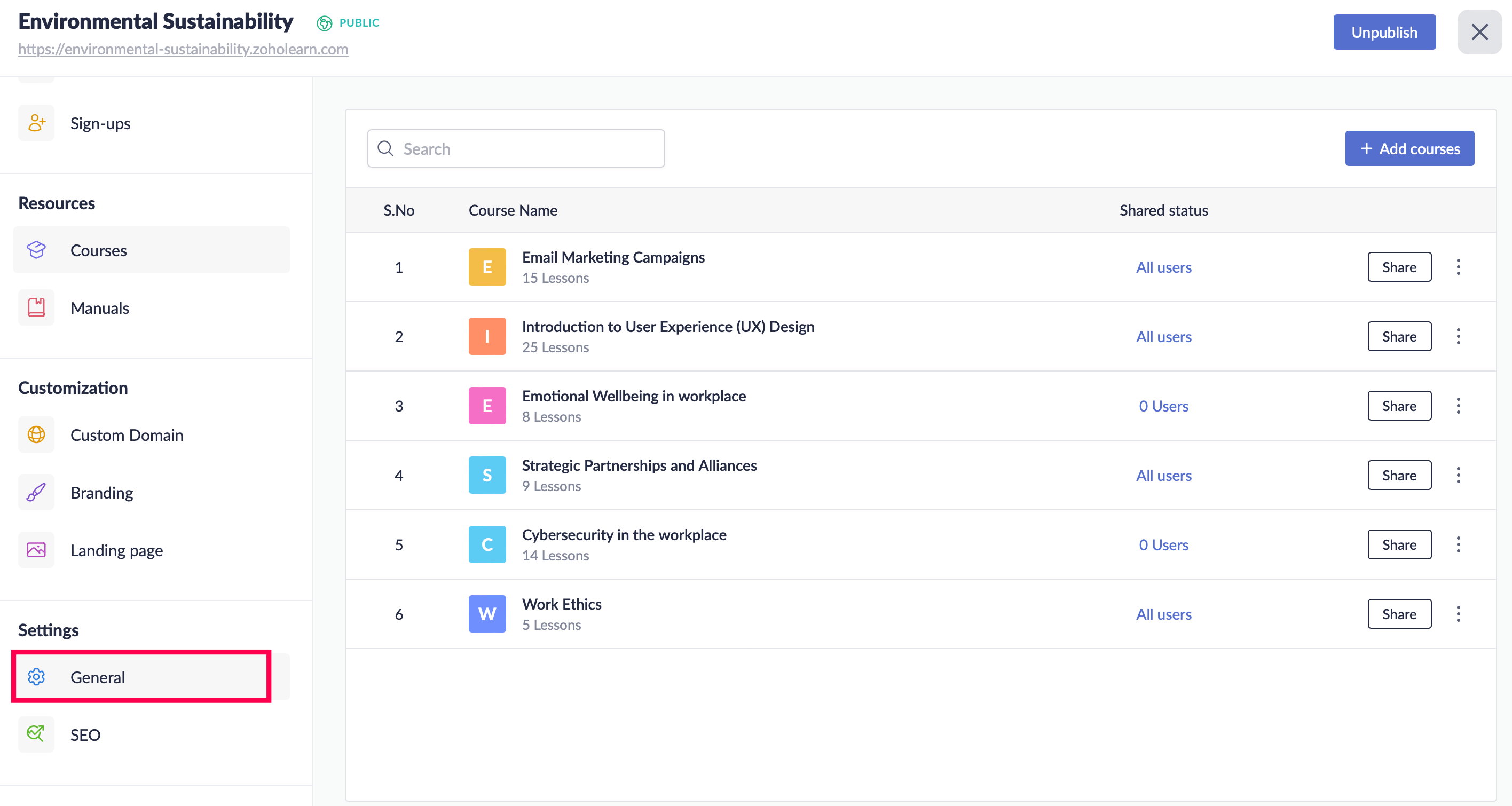 1. Is there an article level external sharing in the custom portal? Yes, in Zoho Learn, you can enable "article level external sharing" within a custom portal, allowing you to share individual articles with users outside your organization through a ...