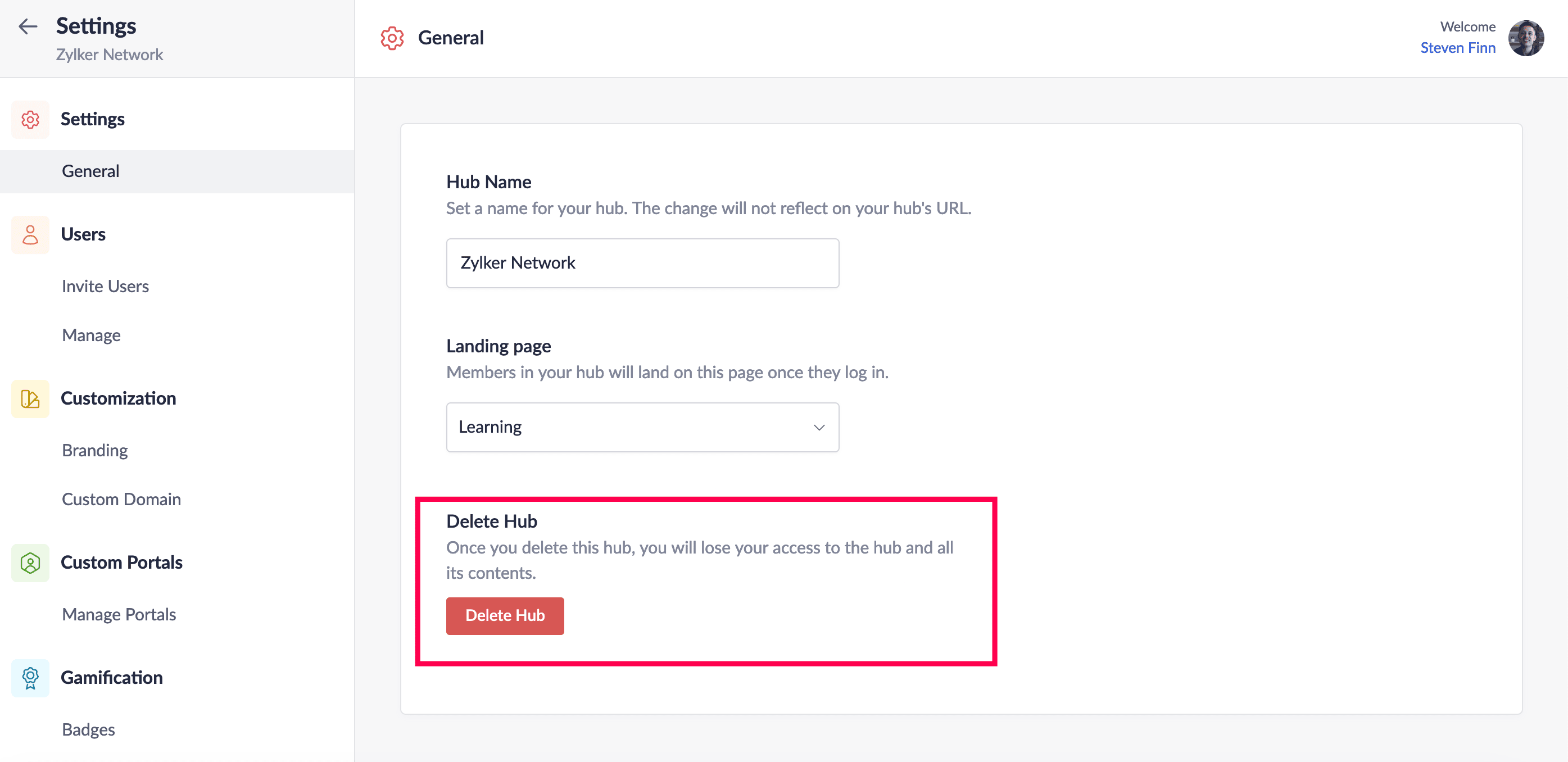 When you delete a hub, you'll lose access to the hub and all its content. Once the hub is moved to trash, it will be deleted from the system within the next 30 days.