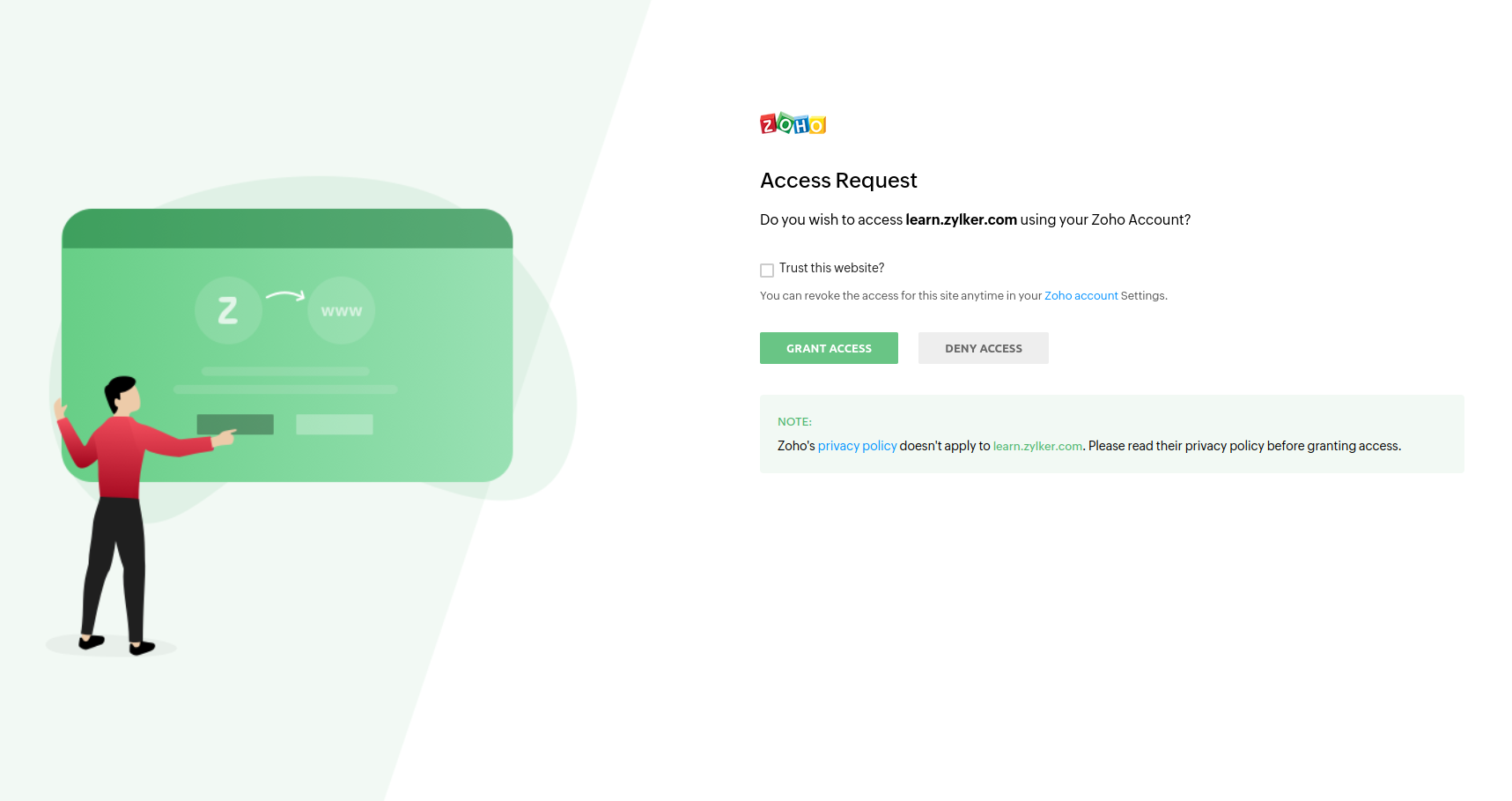 Click the Trust this website checkbox, then click GRANT ACCESS