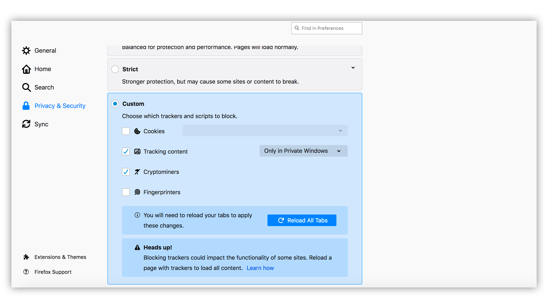 5. Uncheck: Block all Cookies and Prevent cross-site tracking checkboxes.