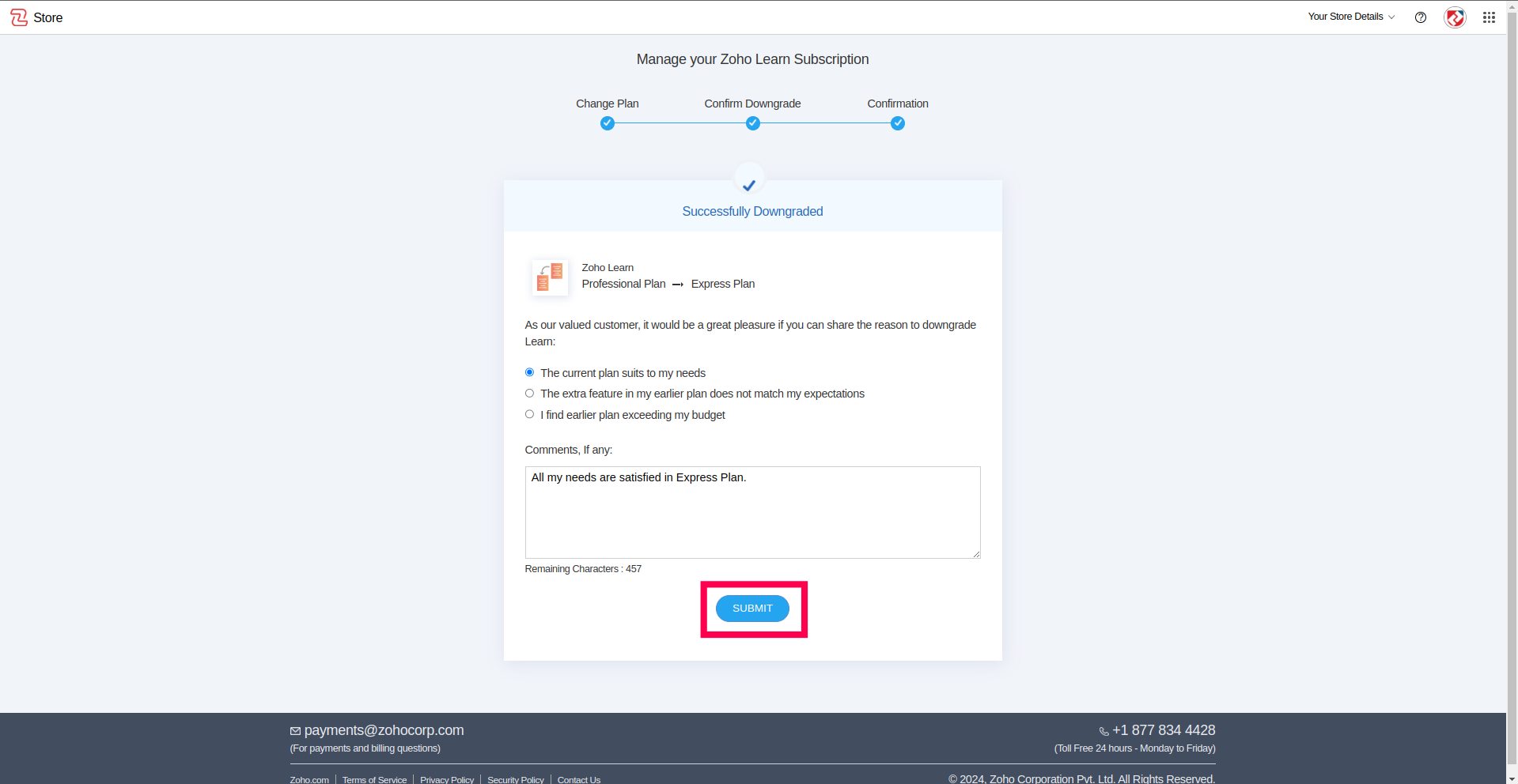 5. You can choose to share the reason for your downgrade, then click Submit.